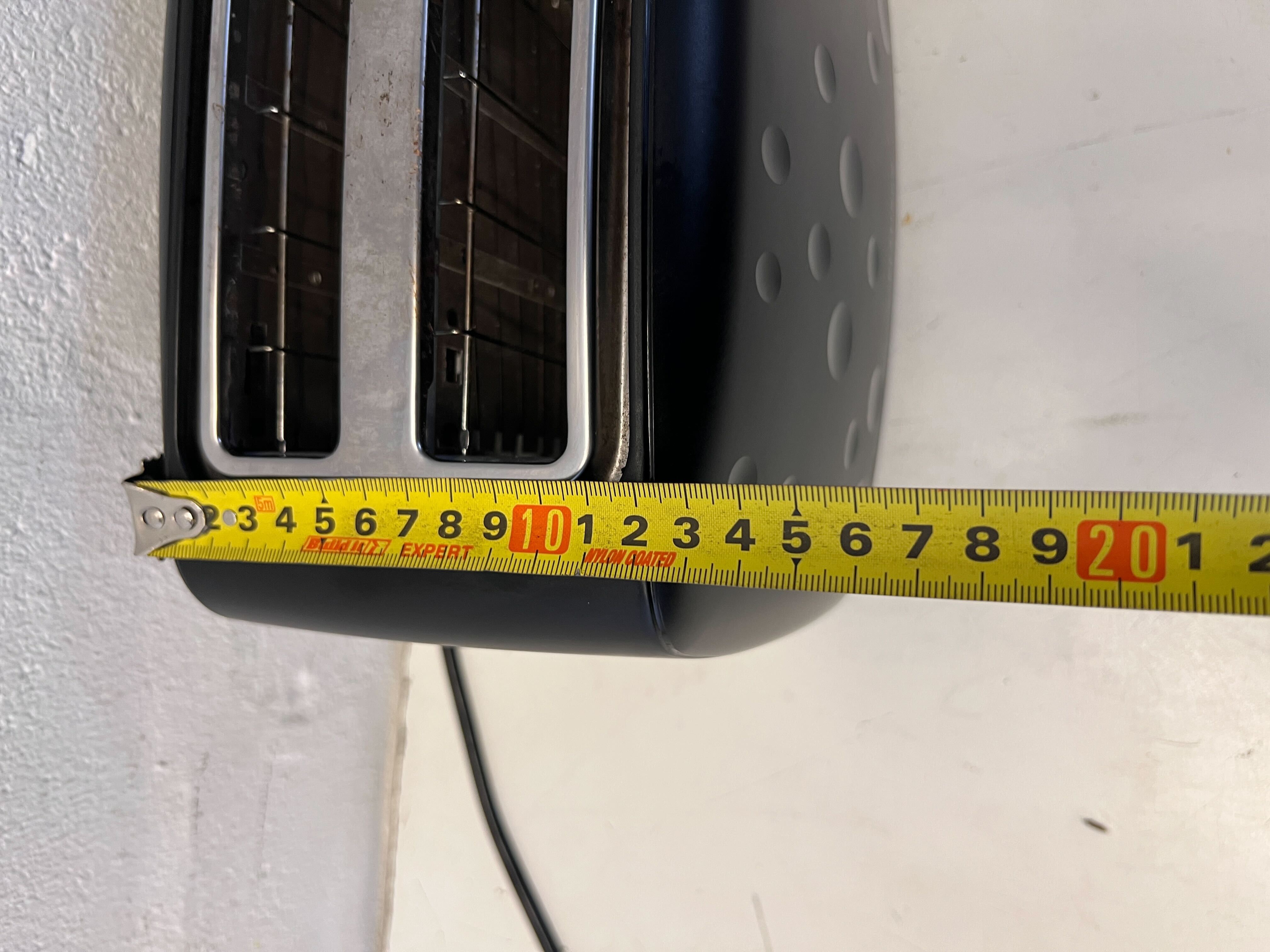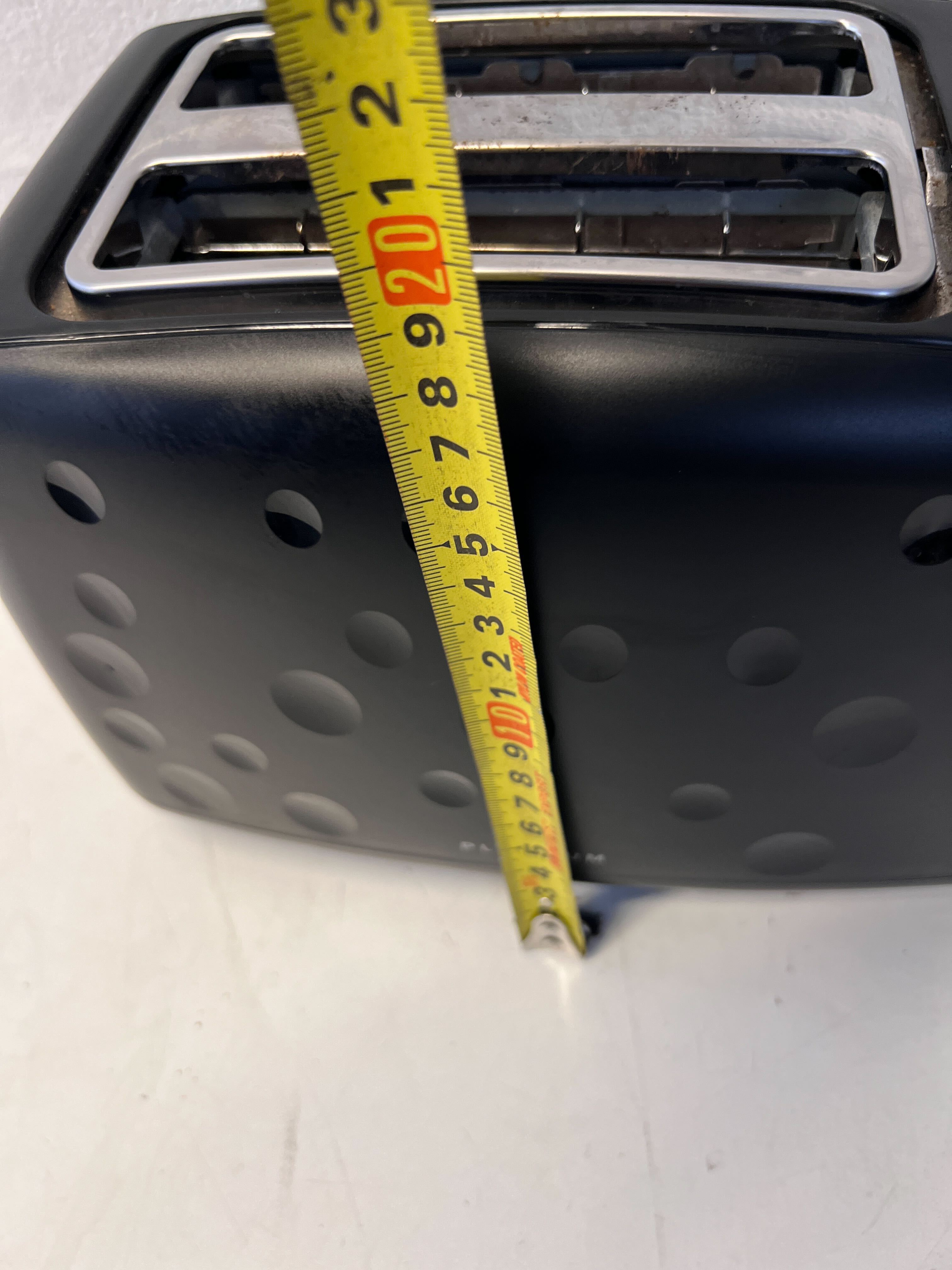 Start your mornings right with this sleek black 2-slice toaster! ✨ Its modern design and compact size make it a perfect addition to any kitchen countertop, whether for a quick slice of toast or a toasted bagel. Featuring multiple browning settings and convenient reheat and defrost functions, it's designed to make your breakfast routine simple and delicious. Enjoy perfectly golden toast every time with this versatile appliance! 🍞This toaster is in good, pre-loved condition. As seen in the images, there are some crumbs visible in the toaster slots, typical of a used kitchen appliance. The exterior shows minor signs of use, but overall it is well-maintained and ready for its next home.