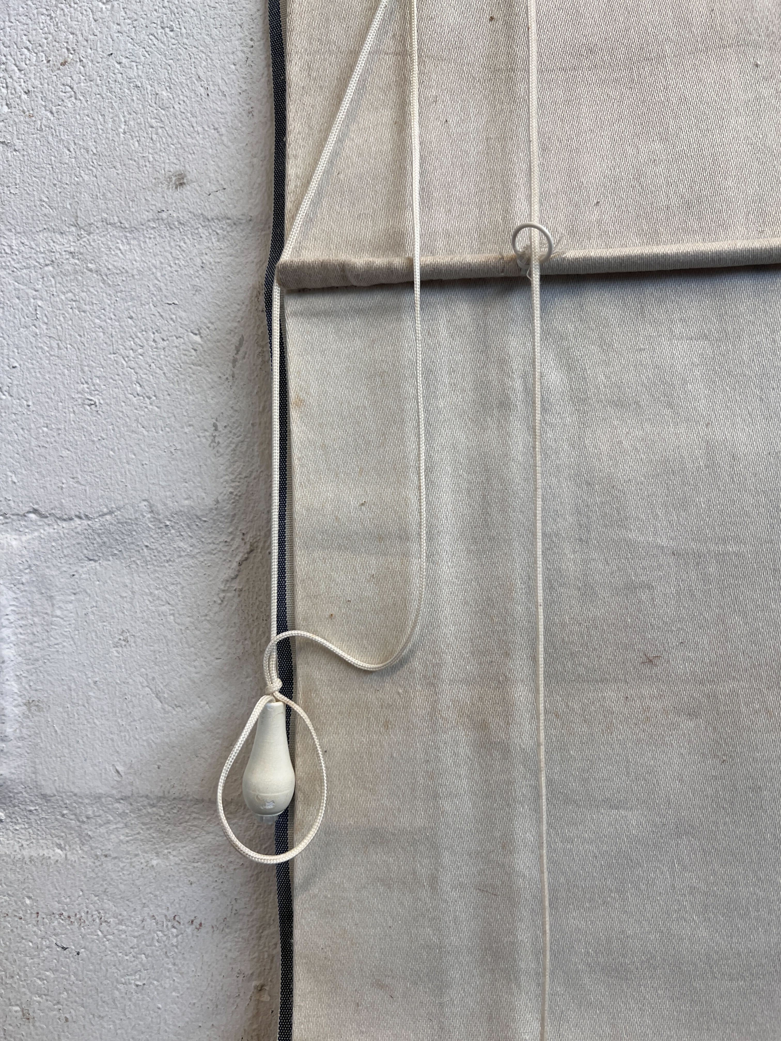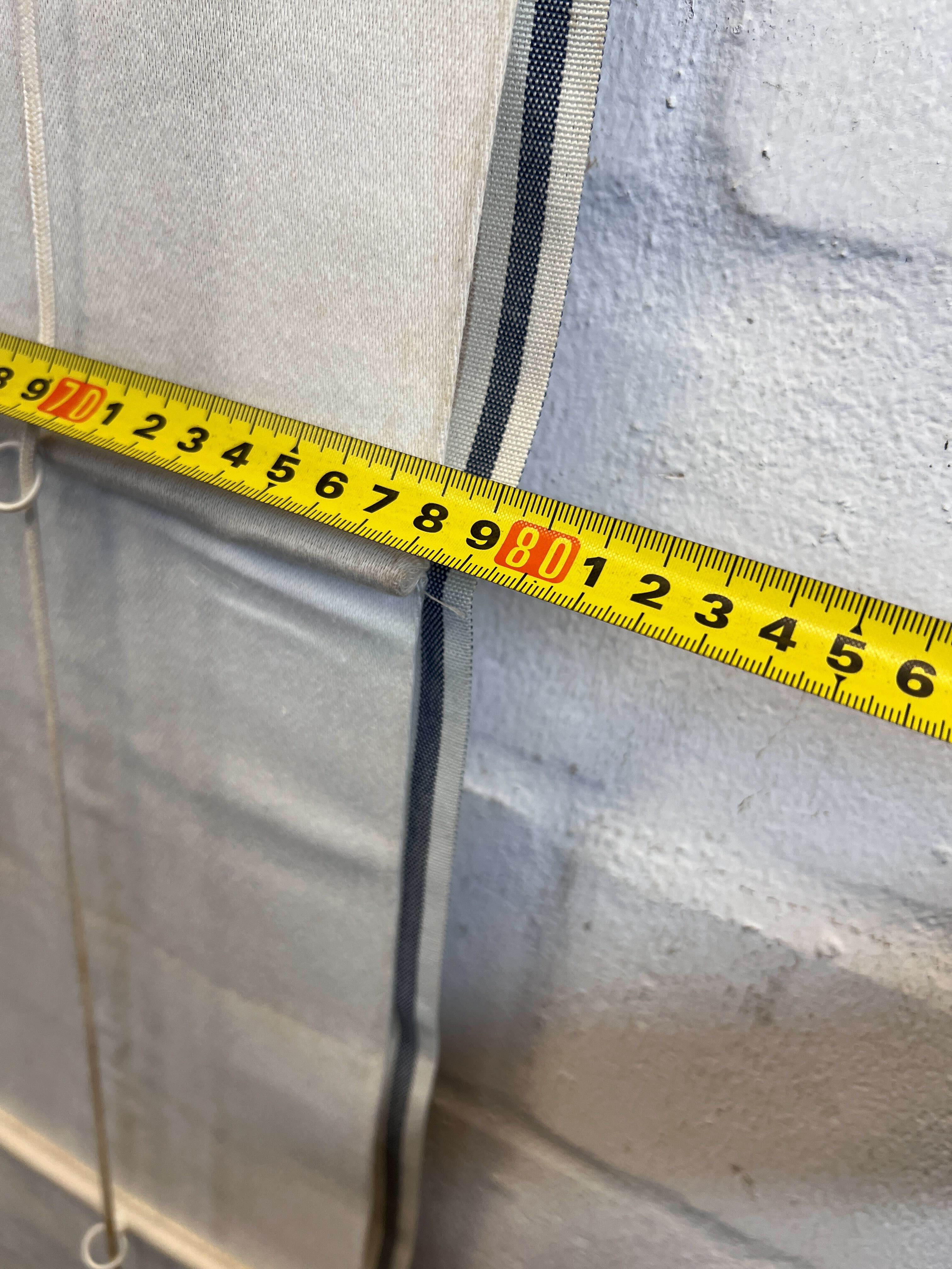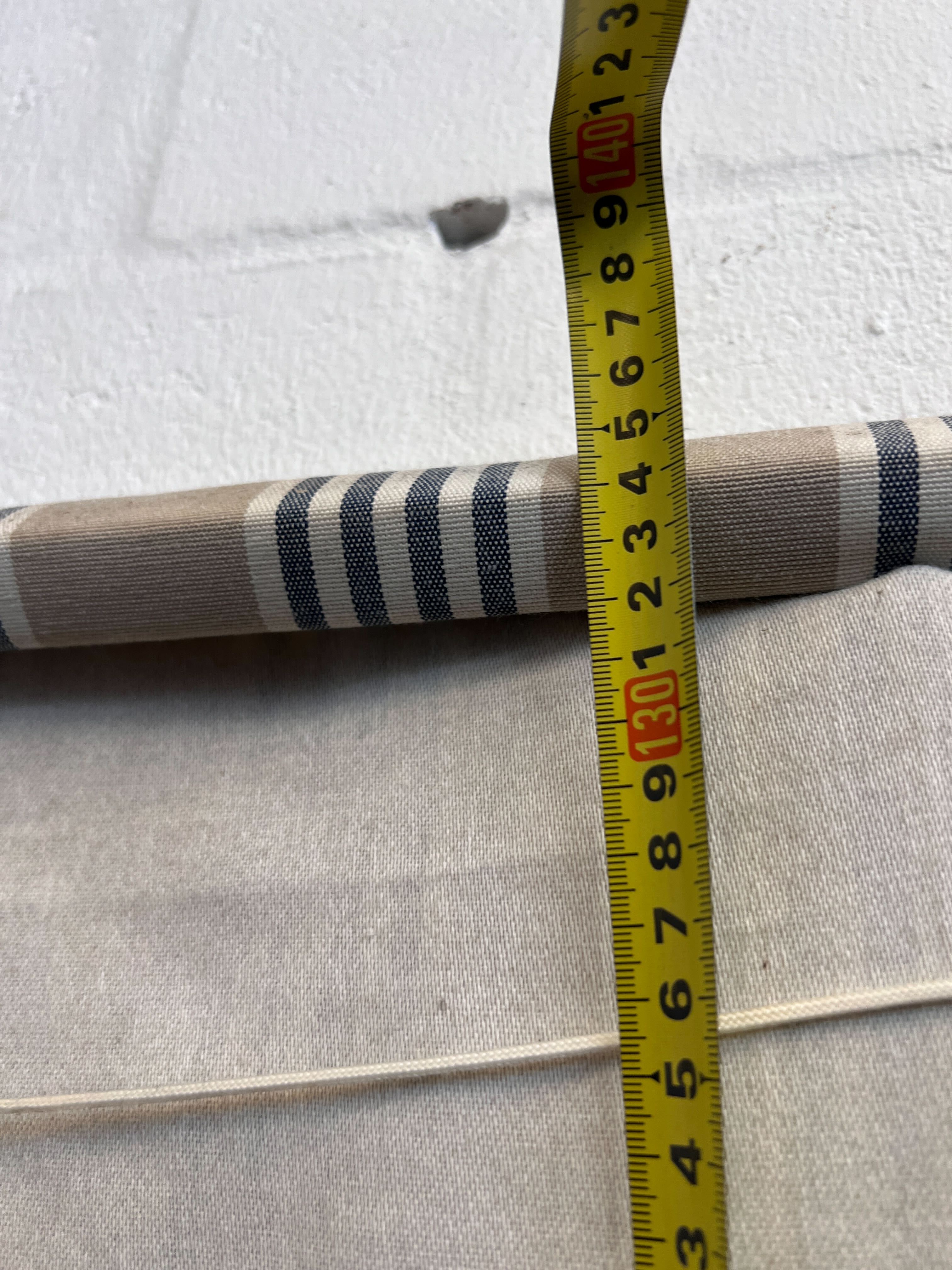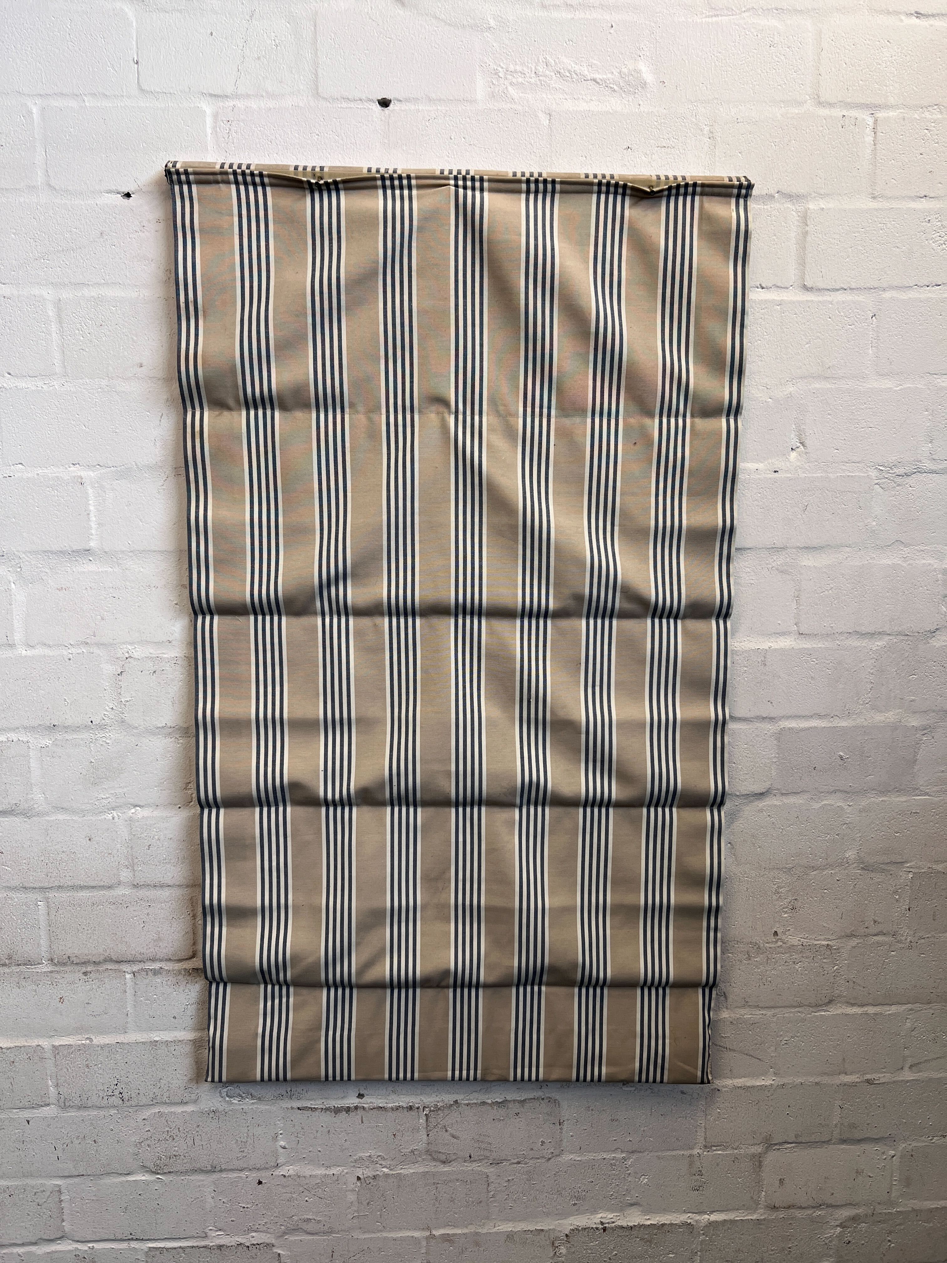 Enhance your living space with this charming classic striped Roman blind! ✨ Its timeless design features elegant vertical stripes in sophisticated beige, crisp white, and deep navy, offering a versatile look that complements a variety of decor styles, from coastal to traditional or even modern farmhouse. Perfect for adding a touch of privacy and style to your windows. 🏠 This pre-loved Roman blind is in good used condition. It shows typical signs of gentle use, such as minor creasing consistent with its function. There are no significant rips, tears, or stains visible in the image, making it ready to bring character to its new home.