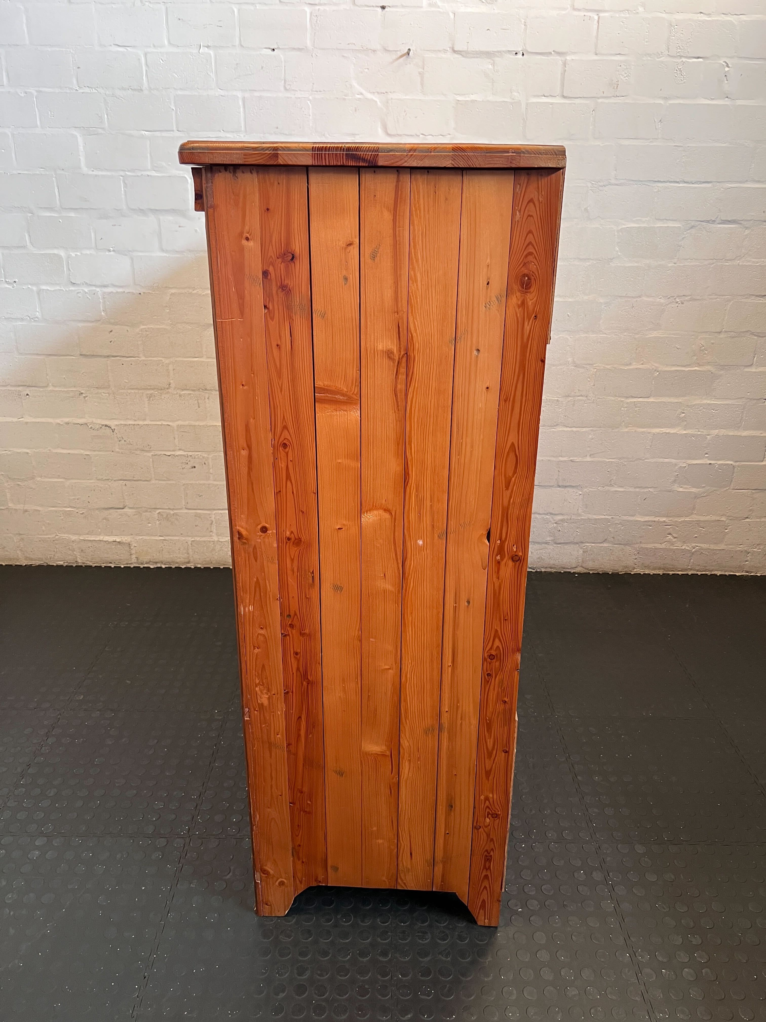 **Condition:** This pre-loved pine cabinet is in good, sturdy condition, consistent with its age and previous use. There are minor superficial marks, scuffs, and natural variations in the wood grain typical of a well-loved second-hand item. All doors and drawers open and close smoothly. Please refer to the images for a comprehensive view of its condition.