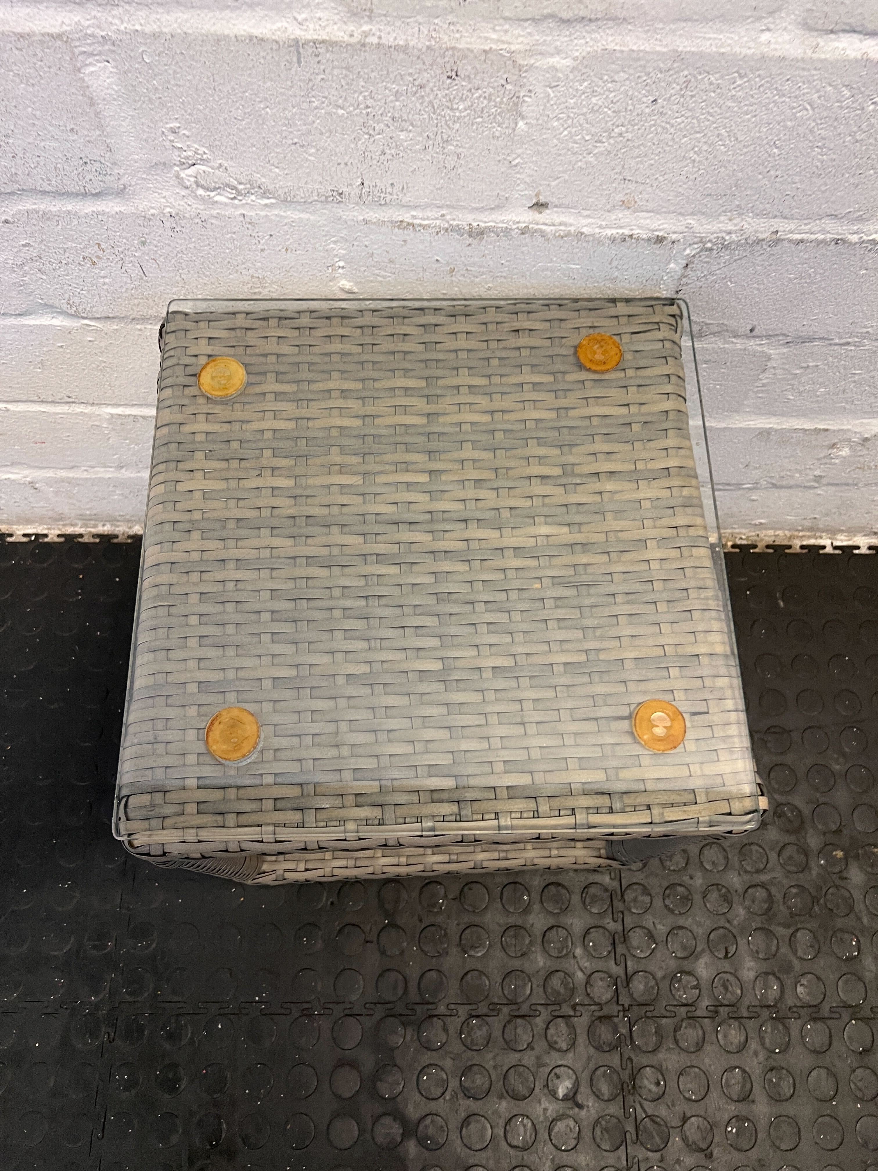 Stylish Gray Wicker Side Table with Glass Top – Minor Wear
