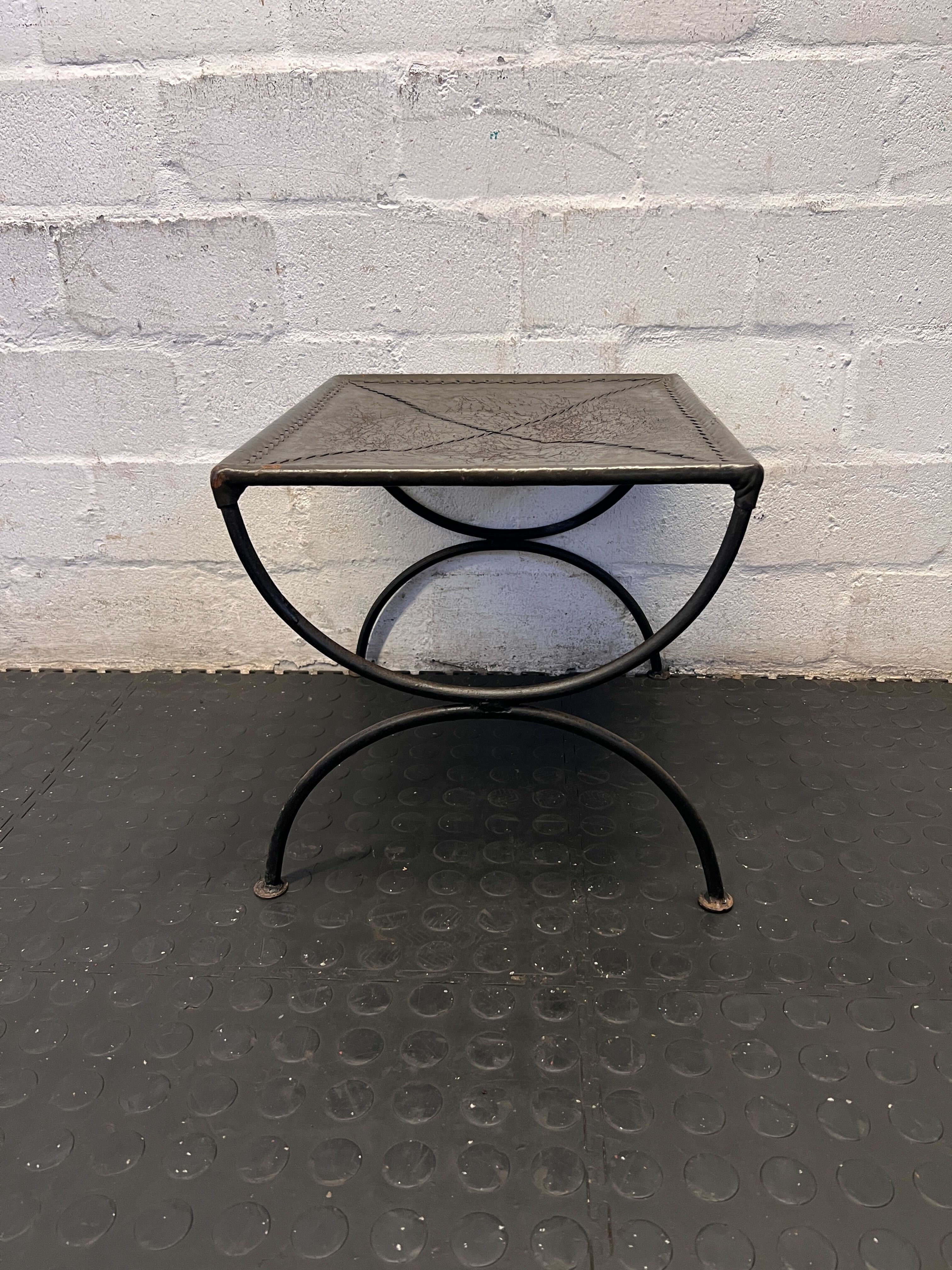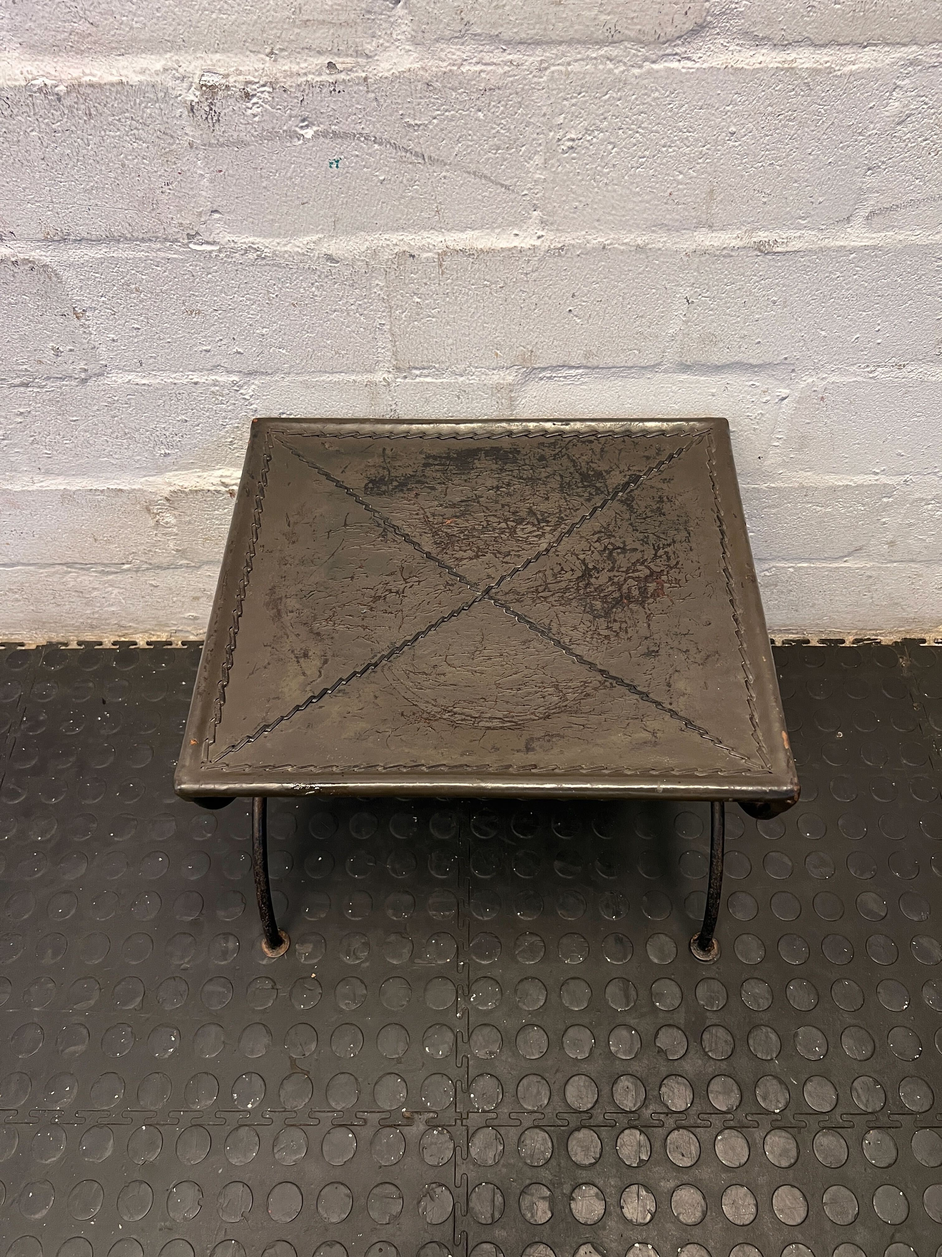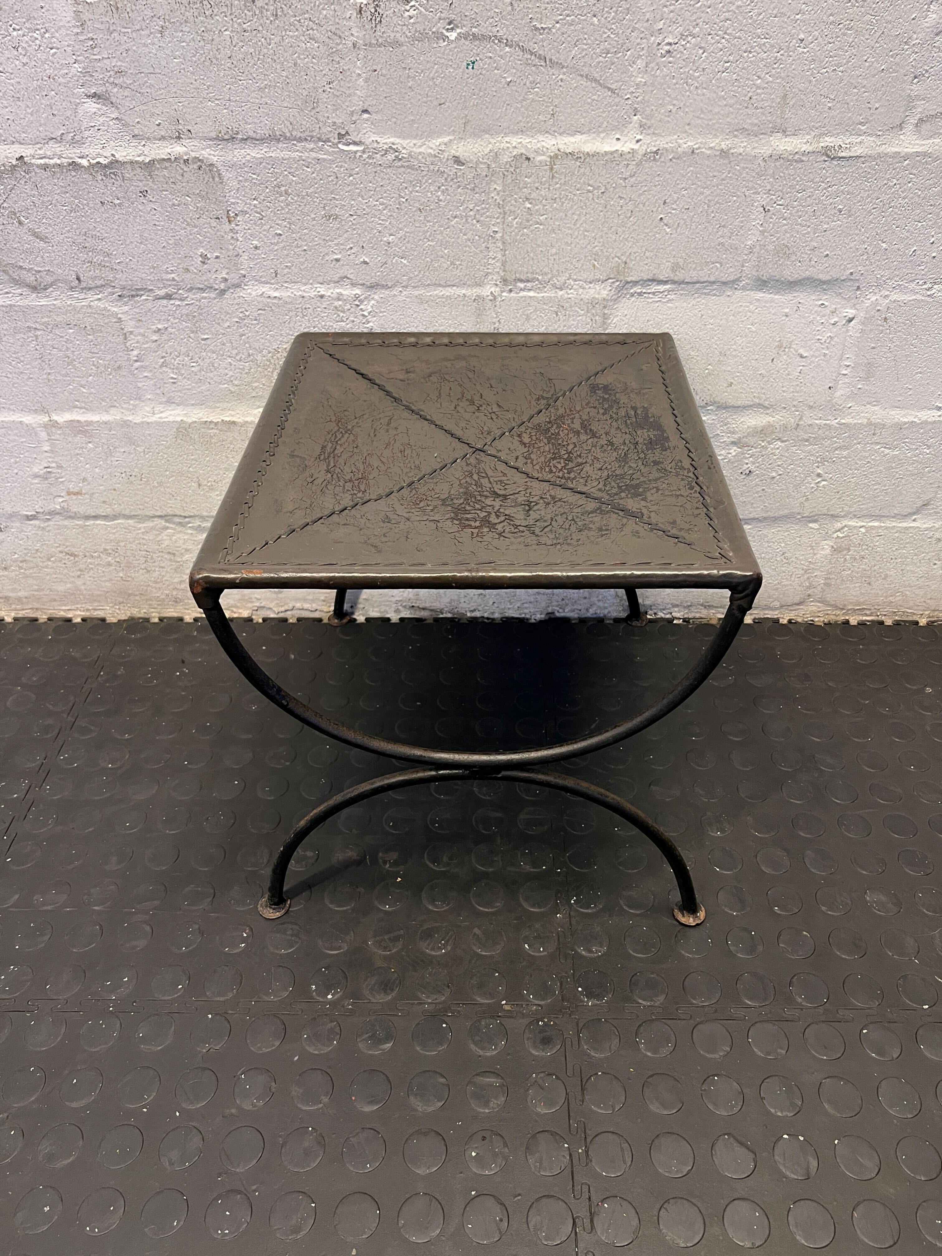 Add a touch of industrial chic or rustic charm to your space with this unique metal accent table! ✨ Its square top features an intriguing textured finish, complemented by gracefully curved legs, making it a versatile piece for any room. Perfect as a bedside table, a plant stand, or a stylish side table next to your favourite armchair. Bring character and functionality into your home with this charming find! 🛋️ This table is in good pre-owned condition, showcasing a lovely aged patina consistent with its vintage character. There are visible signs of wear and minor surface imperfections on the metal top and legs, which enhance its rustic appeal. Please refer to the images for a detailed view of its current state. 💎