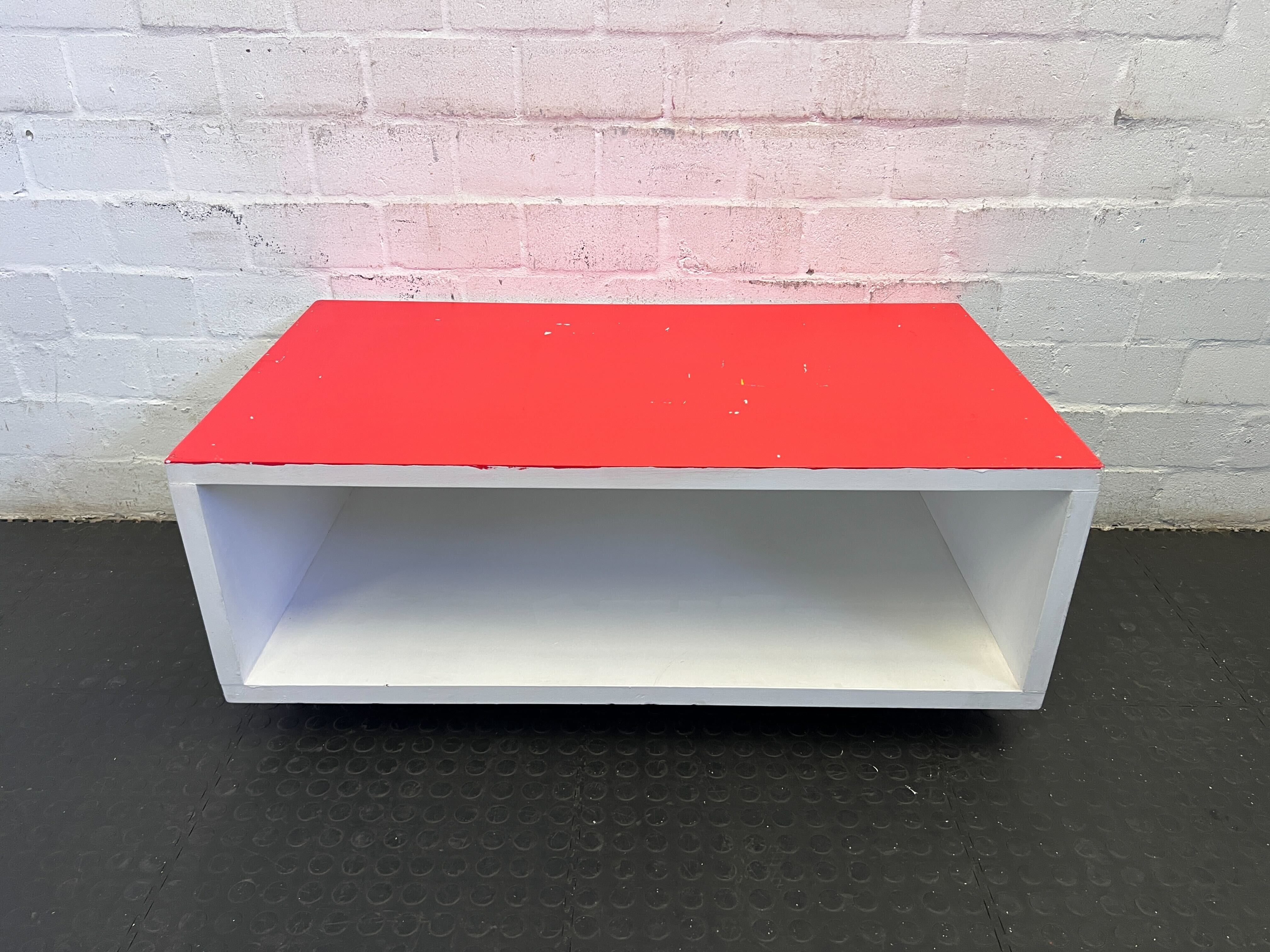 Chic Red and White Coffee Table with Minimal Wear