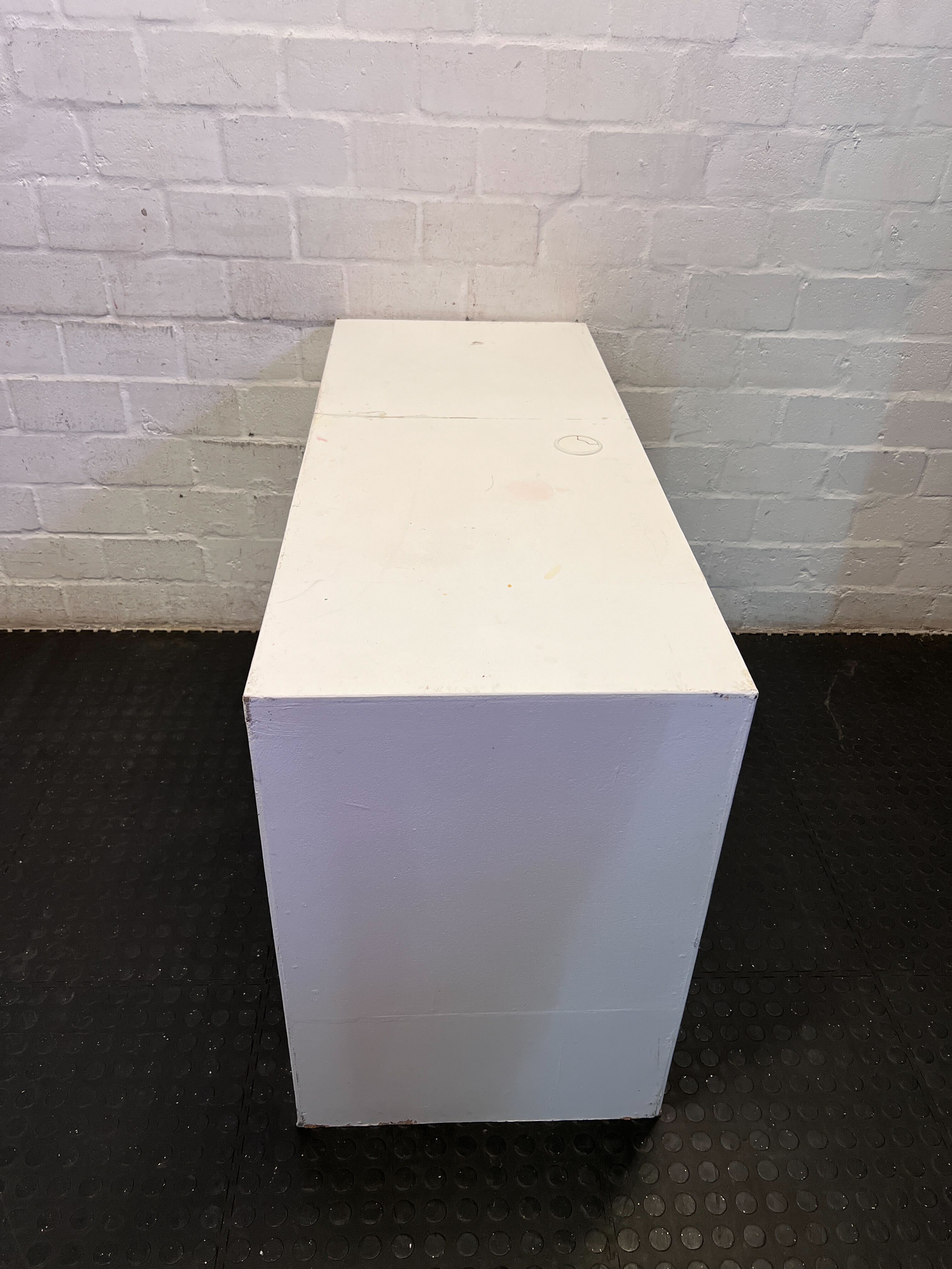 A56863 Elevate your space with this sleek and versatile white minimalist table! ✨ Perfect as a modern console table in your living room, a functional display stand in a retail setting, or even a compact workspace. Its clean lines and neutral white finish blend seamlessly with any decor, offering endless possibilities for style and utility. Whether you're showcasing decorative items, holding essentials, or creating a neat display, this piece is a true chameleon.#MinimalistFurniture #ConsoleTable #ShopDisplay #VersatileDesign #2ndhandwarehouse 🧡