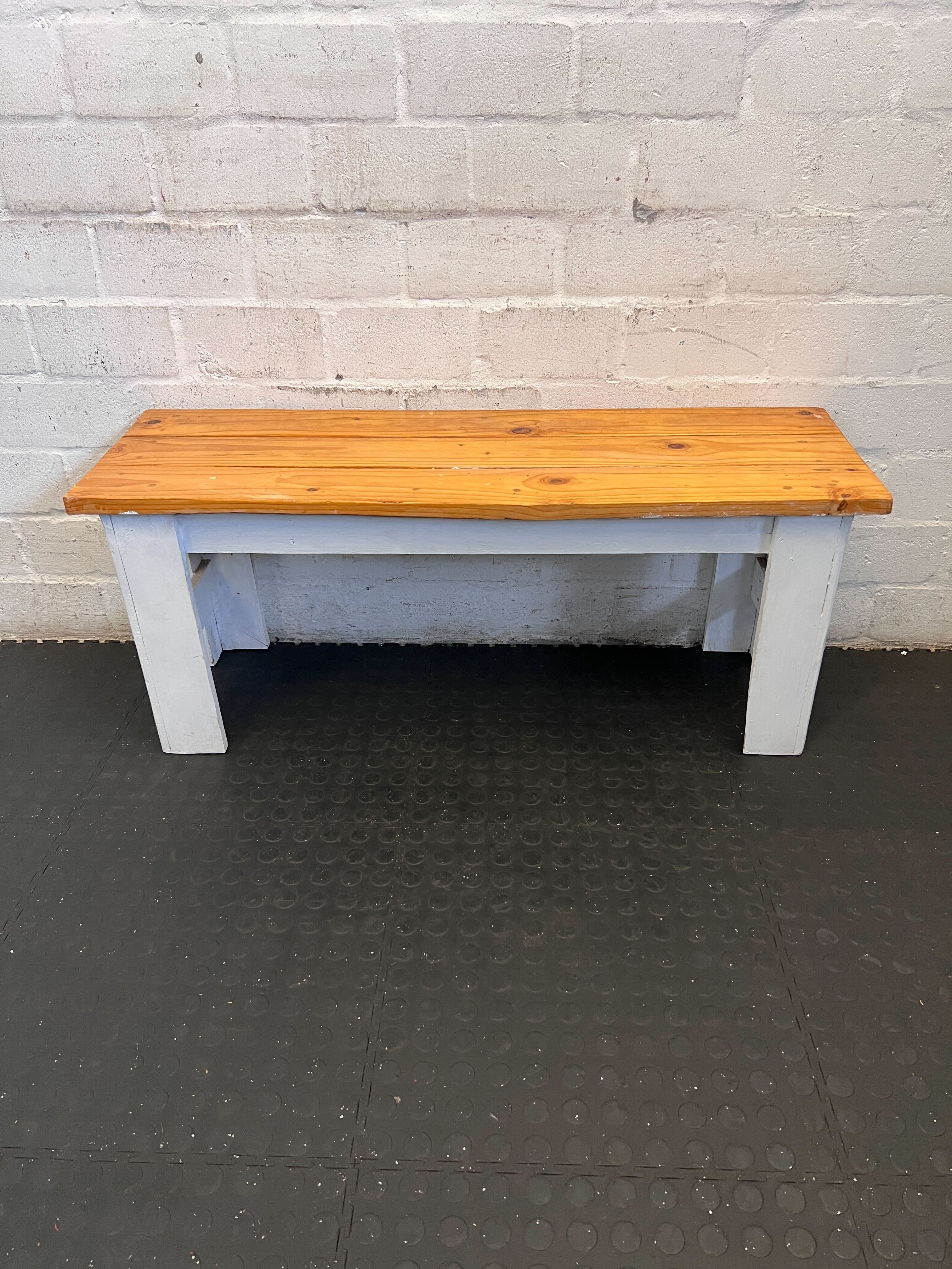 A56422 Discover the charm and versatility of this delightful two-tone wooden bench! ✨ Featuring a warm, natural wood top that showcases its unique grain and knots, paired with sturdy, painted light grey/white legs, this bench effortlessly blends rustic appeal with practical functionality. It's an ideal addition to your entryway for convenient seating, a dining area for a communal feel, or even as a stylish plant stand or display surface in any room. Its robust design makes it a versatile piece that complements a variety of decor styles.🛋️#WoodenBench #RusticFurniture #FarmhouseDecor #EntrywayBench #2ndhandwarehouse🧡