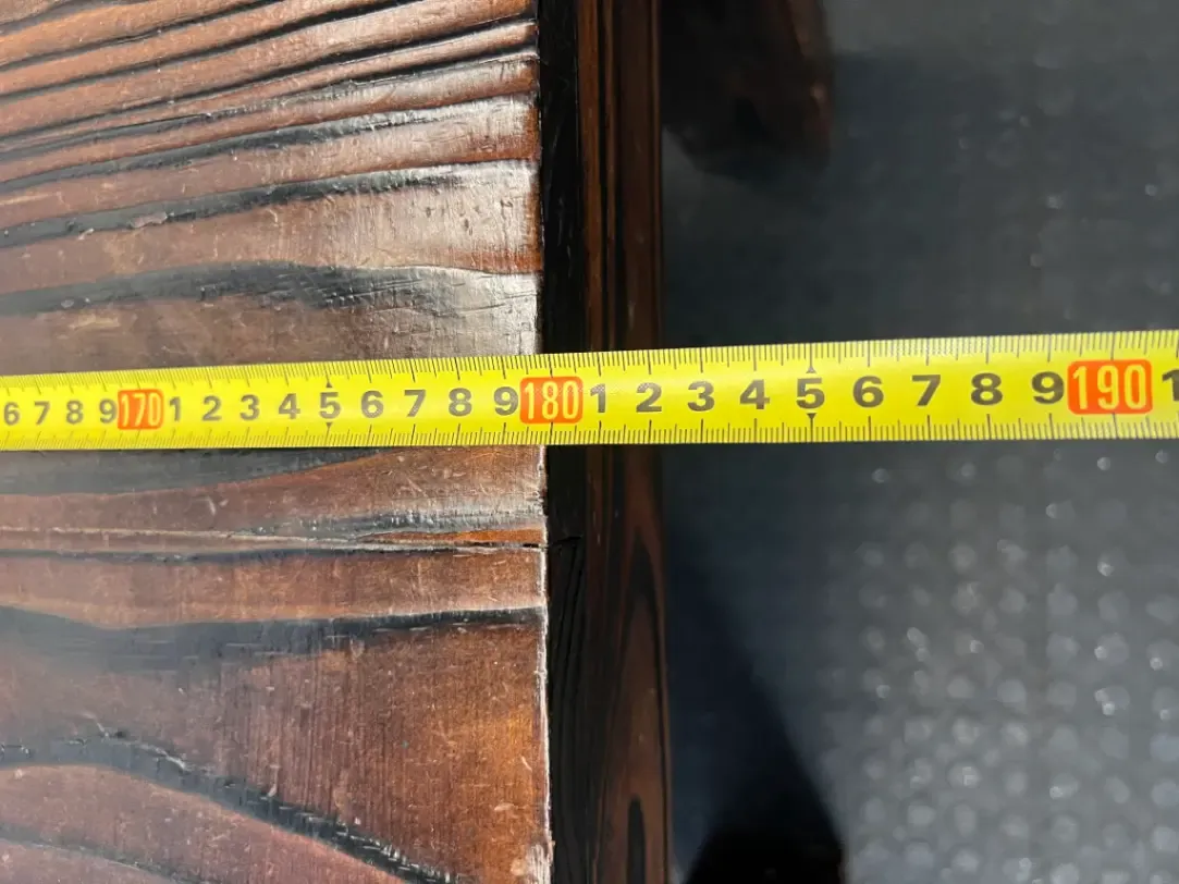 The table is in good second-hand condition and has a wonderful textured finish that highlights the natural beauty of the timber. As it is a pre-loved item, it shows some light surface wear, consistent with age and use, which only adds to its authentic character. Please note there is a small visible mark on the edge of the tabletop as seen in the photos. We have listed this item as-is, and it is ready to become the heart of your home for many dinners to come.