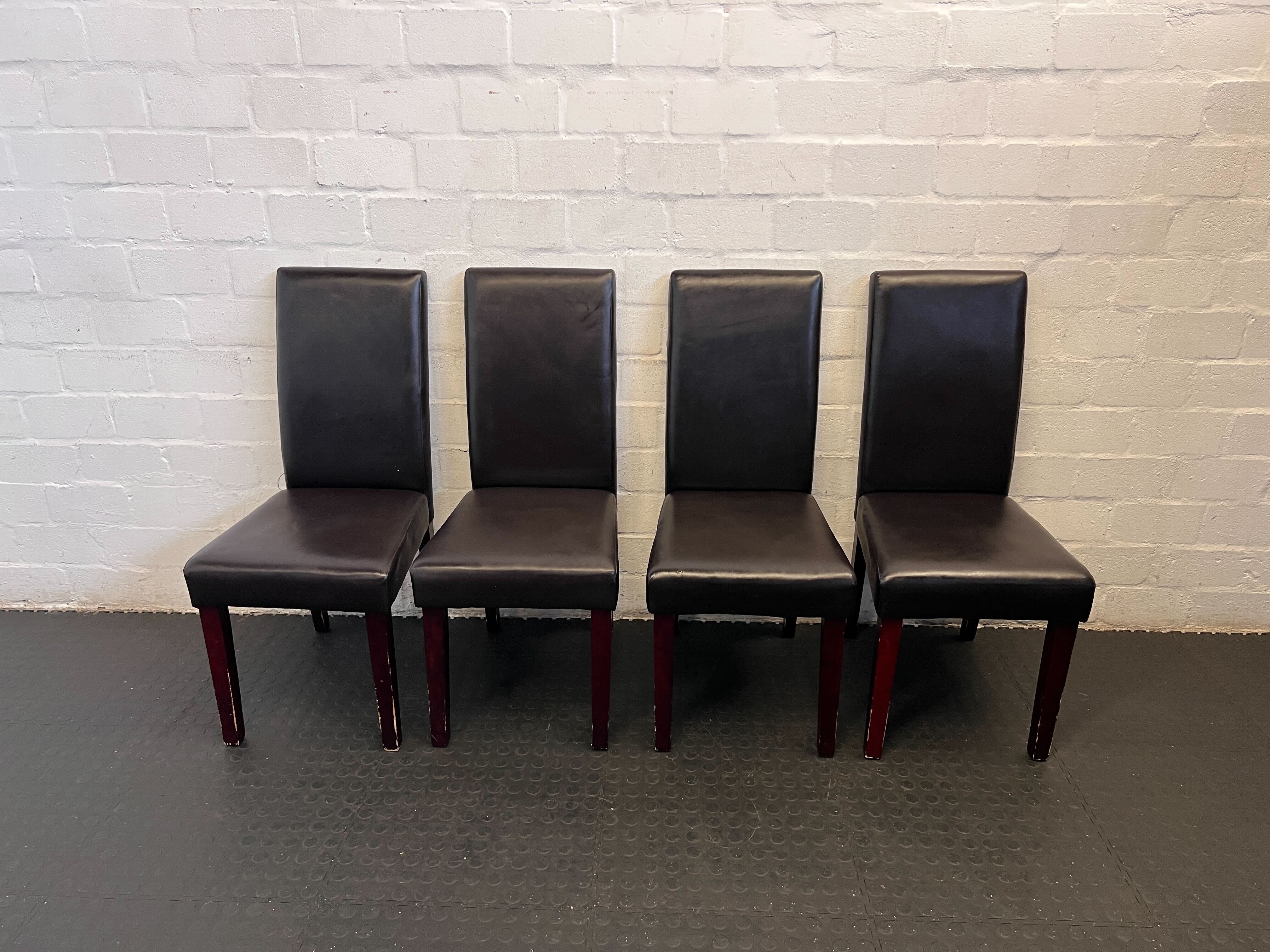 Elegant Black Leather Dining Chair with Cherry Wood Legs