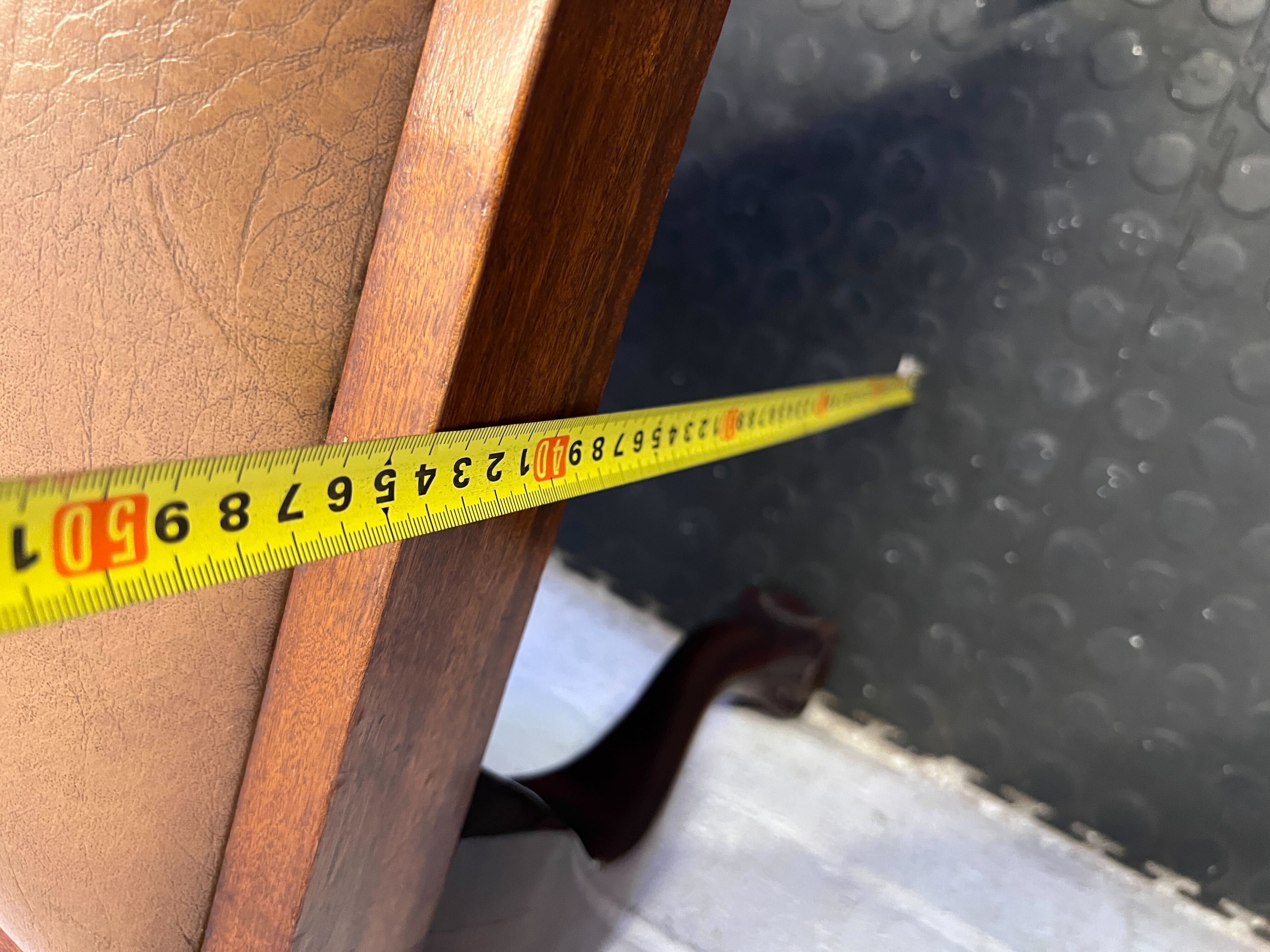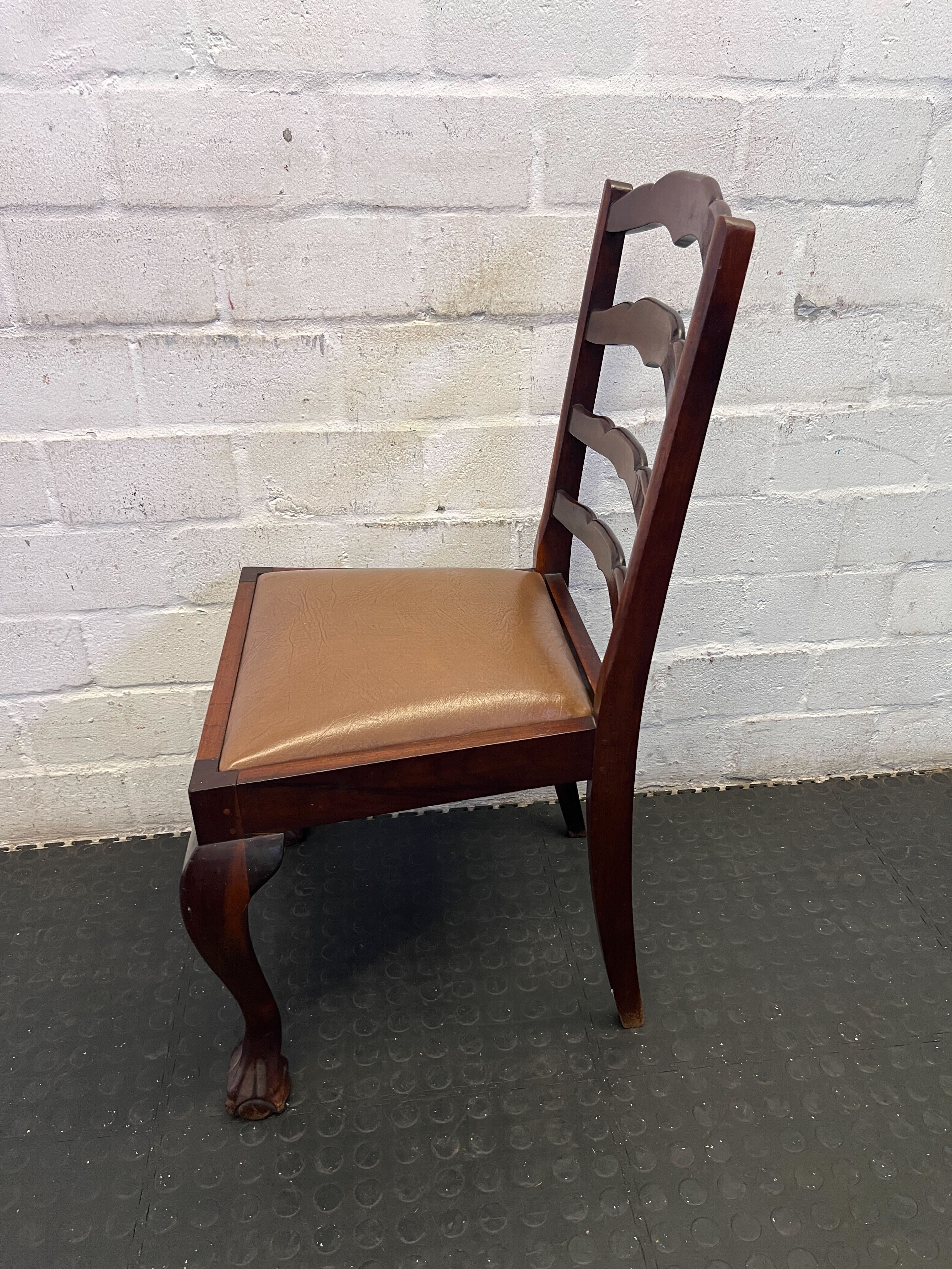 Add a touch of classic elegance to your home with this charming vintage ladder back dining chair. Crafted from rich, dark wood, it features a distinctive ladder back design and elegant cabriole legs terminating in charming claw feet. The comfortable upholstered seat in a light tan hue complements the wood finish beautifully. Perfect as a standalone accent piece in a hallway or bedroom, or as part of a dining set, this chair brings timeless style to any space. ✨🛋️* This chair is in good vintage condition, consistent with its age and previous use. There are minor superficial scratches and scuffs on the wooden frame, particularly on the legs and edges, which add to its authentic character. The upholstered seat shows some light creasing and minor wear, but remains clean and fully intact. Overall, a sturdy and aesthetically pleasing piece ready for its new home.