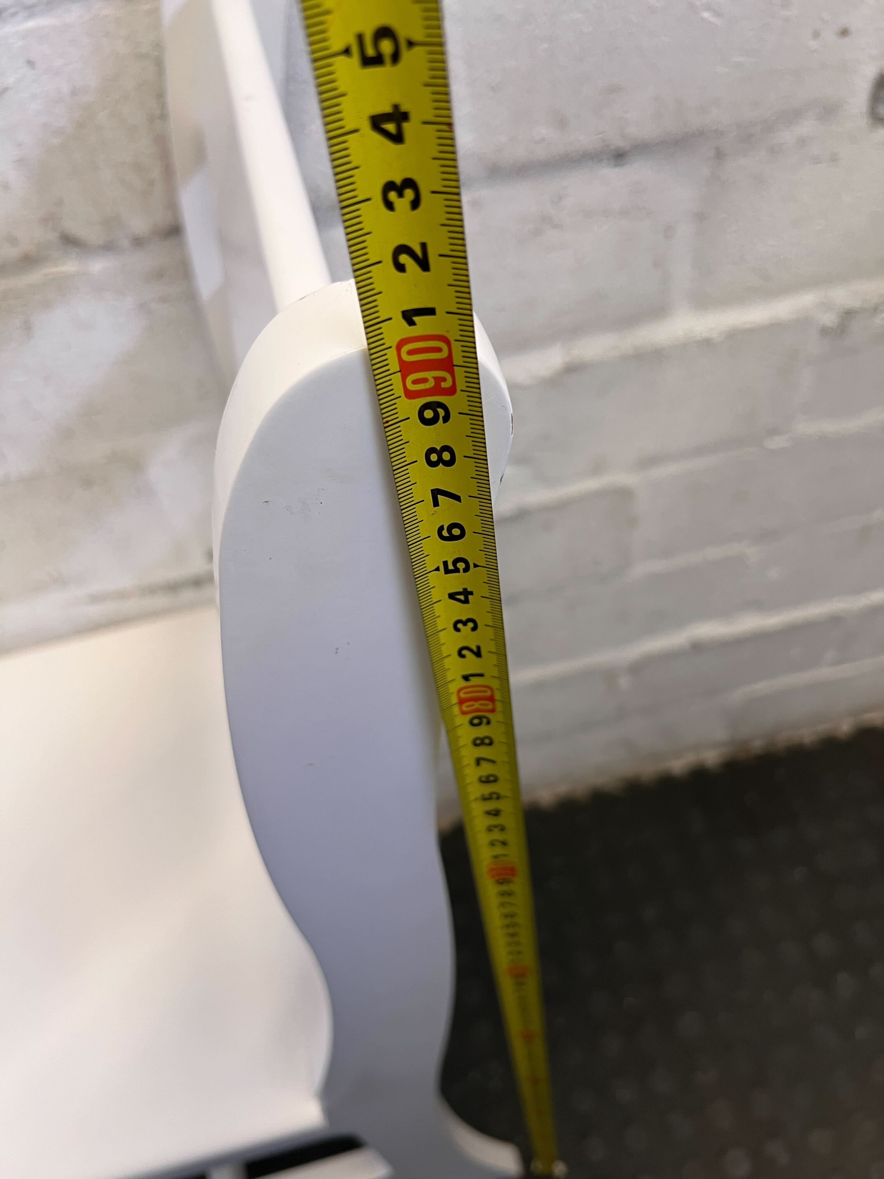 Add a touch of simple elegance to any room with this versatile white wooden chair! ✨ Its classic ladder-back design and crisp white finish make it a perfect fit for a dining table, a cozy desk, or even as a stylish accent piece. Lightweight yet sturdy, it's ready to bring functional style to your home or office. 🪑 This chair is in good pre-loved condition. There may be minor scuffs or marks consistent with gentle use, as visible in the images, but nothing significant that detracts from its overall charm and functionality. It's clean and ready for its new home!