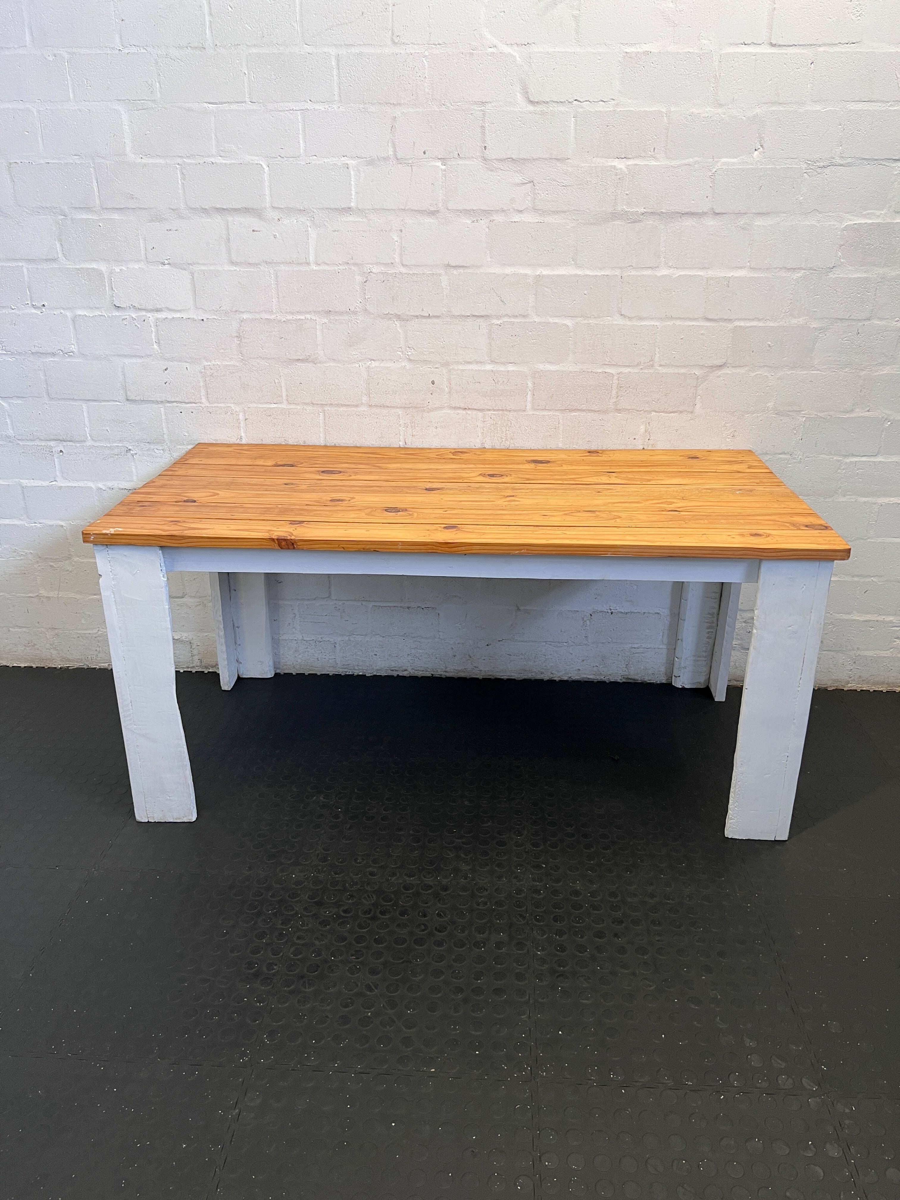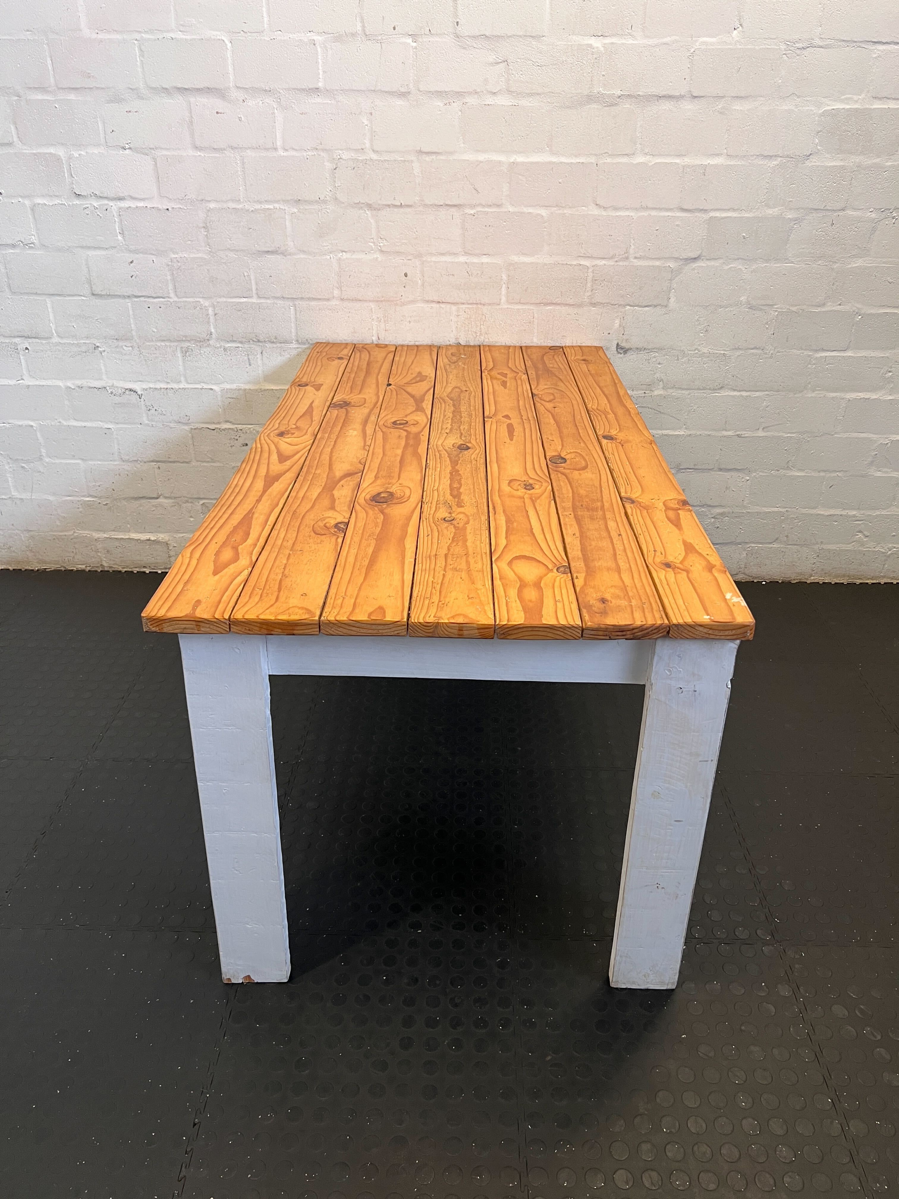 A56420 Discover this charming and versatile table, featuring a beautiful solid wood top with natural grain and a sturdy, painted light grey/white base. Its rustic yet clean design makes it a perfect addition to various spaces. Use it as a cozy dining table for small gatherings, a robust desk for your home office, a creative craft station, or a practical display table. ✨ Its simple aesthetic blends seamlessly with modern farmhouse, industrial, or minimalist decor. 🏡#woodentable #rusticfurniture #versatiletable #prelovedhome #2ndhandwarehouse 🧡