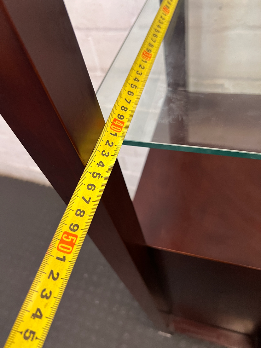 Dark Brown Antique-Style Cabinet with Glass Shelves and 4 Drawers