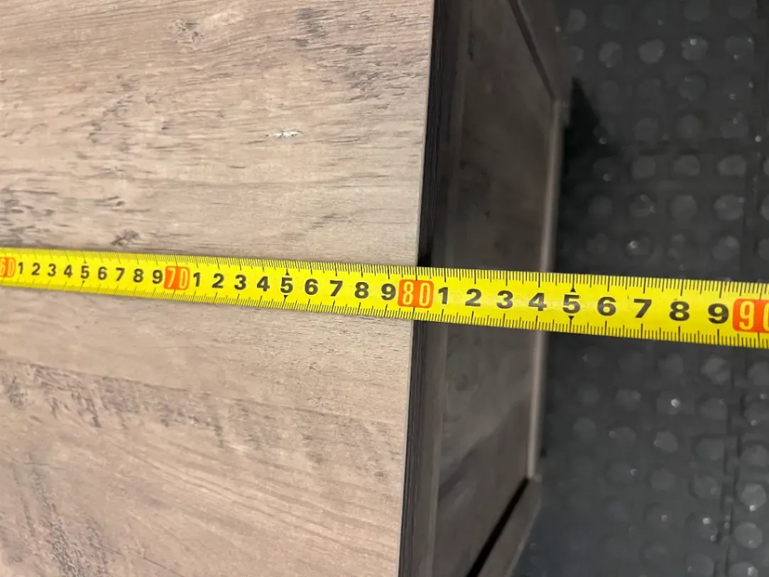 The unit features two front-opening doors with sleek black handles for easy access during cleaning. The sturdy top surface can even be used as a side table or a spot for your pet's bed. This item is in beautiful used condition and is noted as being like-new, showing very little signs of previous use.