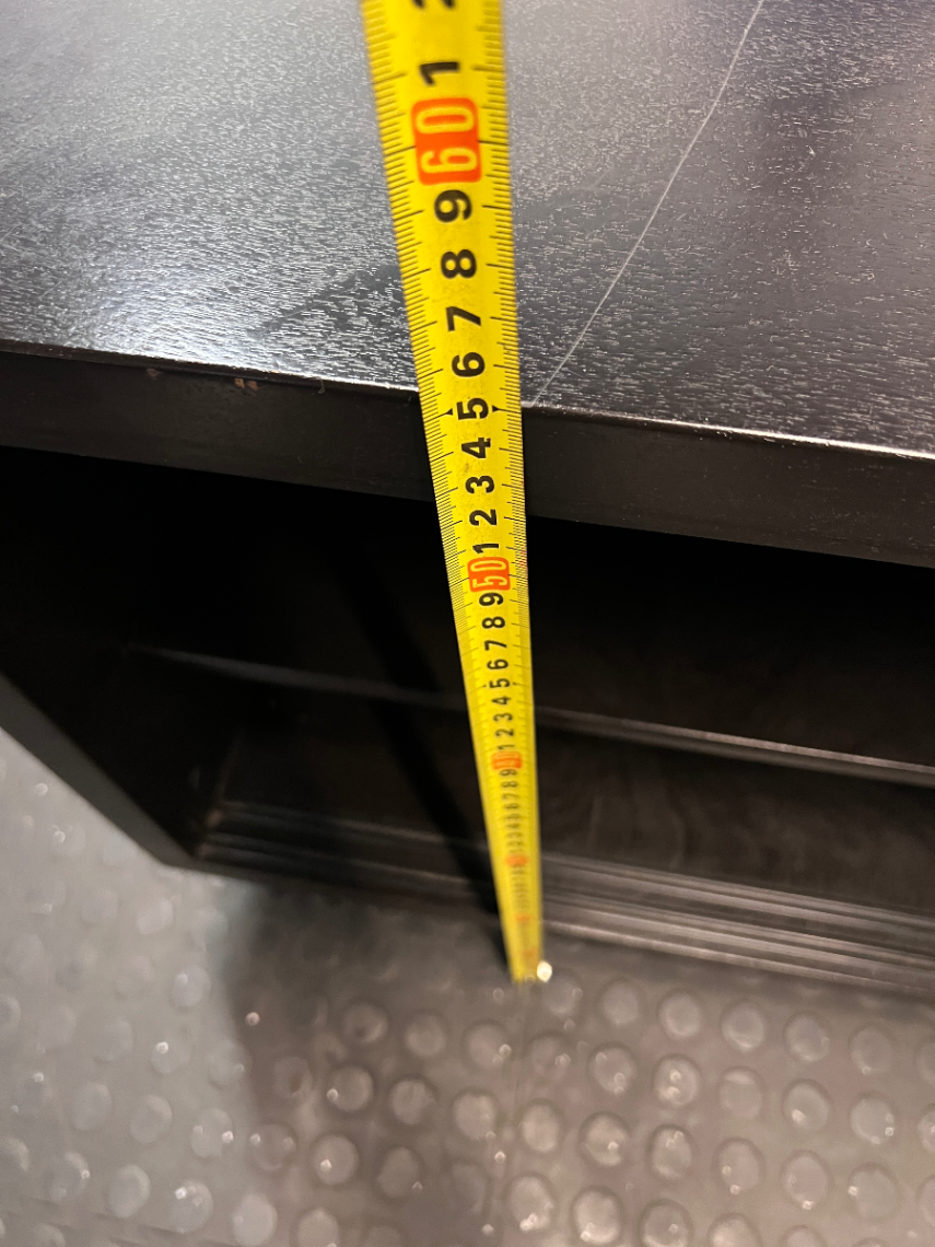 This piece is in good overall condition and is structurally stable. Please note there are minor scratches on the top surface where a previous television stand was positioned, consistent with daily use. This unit is sold as-is and has not been tested for specific weight capacities.