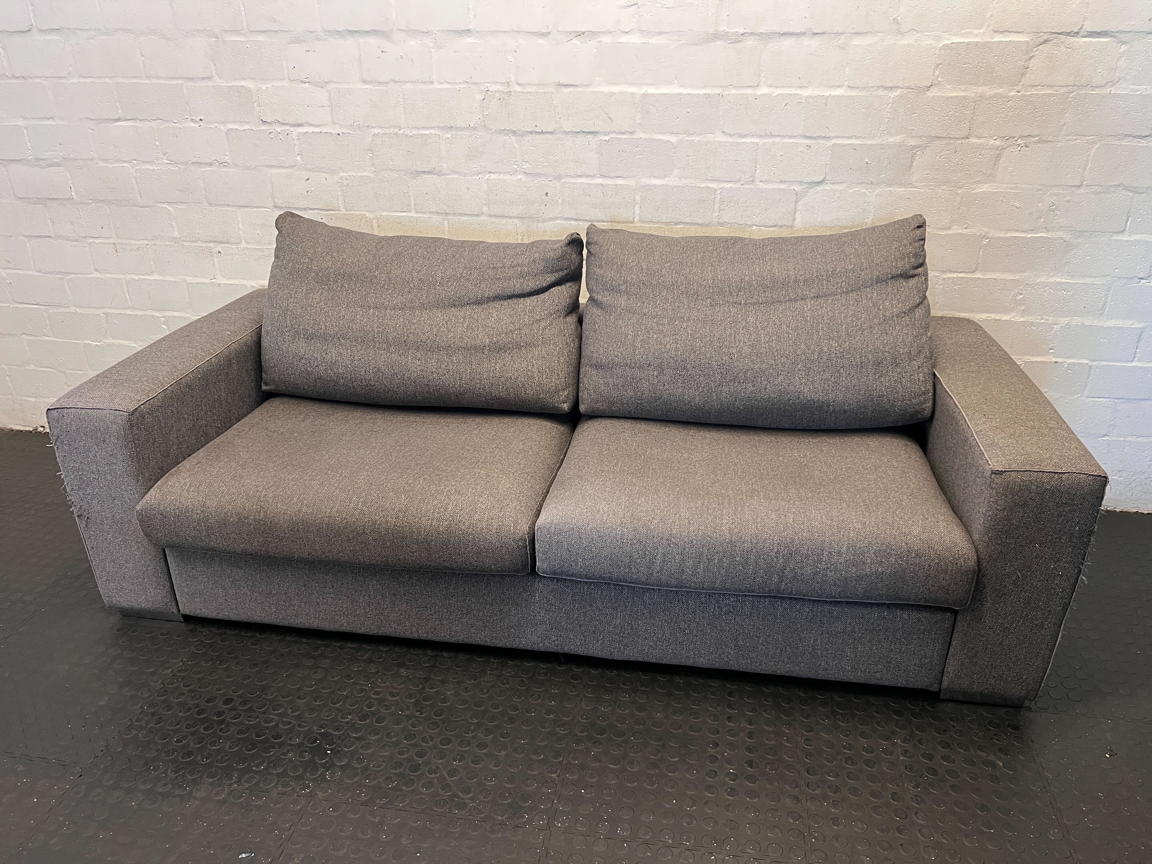 Elevate your living space with this stylish and compact grey fabric two-seater sofa! ✨ Its modern design and neutral grey upholstery make it a versatile piece that can seamlessly blend into various decor styles, from contemporary to minimalist. Perfect for smaller apartments, a cozy reading nook, or even an office reception area, this sofa offers comfort without compromising on style. The plush cushions invite you to relax and unwind after a long day. 🛋️This sofa is in good pre-loved condition. As a second-hand item, it may show minor signs of use typical for its age, such as slight wear on the fabric, particularly on the armrests, which is visible in the image. Overall, it's a solid and comfortable piece ready for its new home.