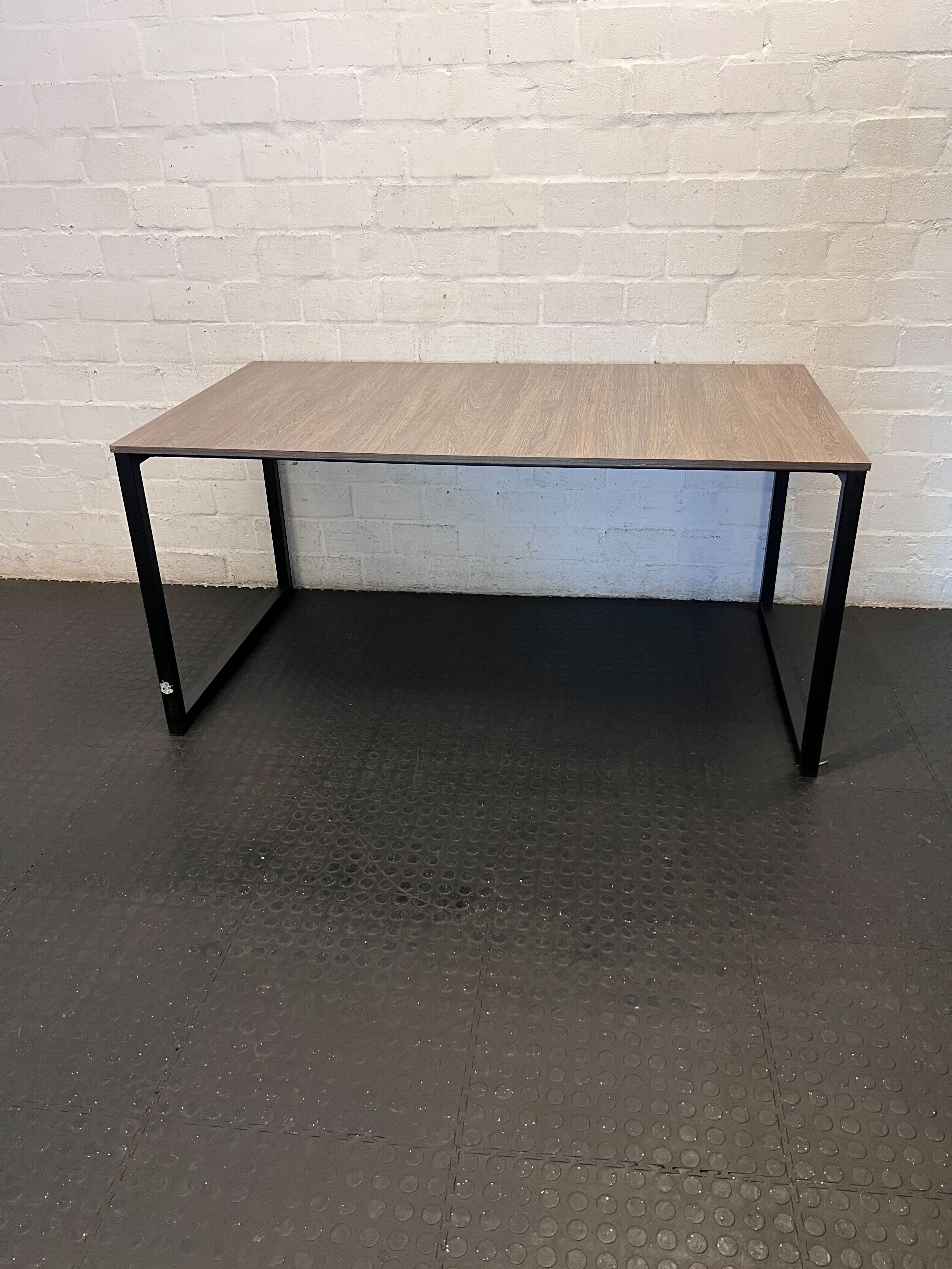 Modern Wood Grain & Black Metal Desk 160 x 90cm