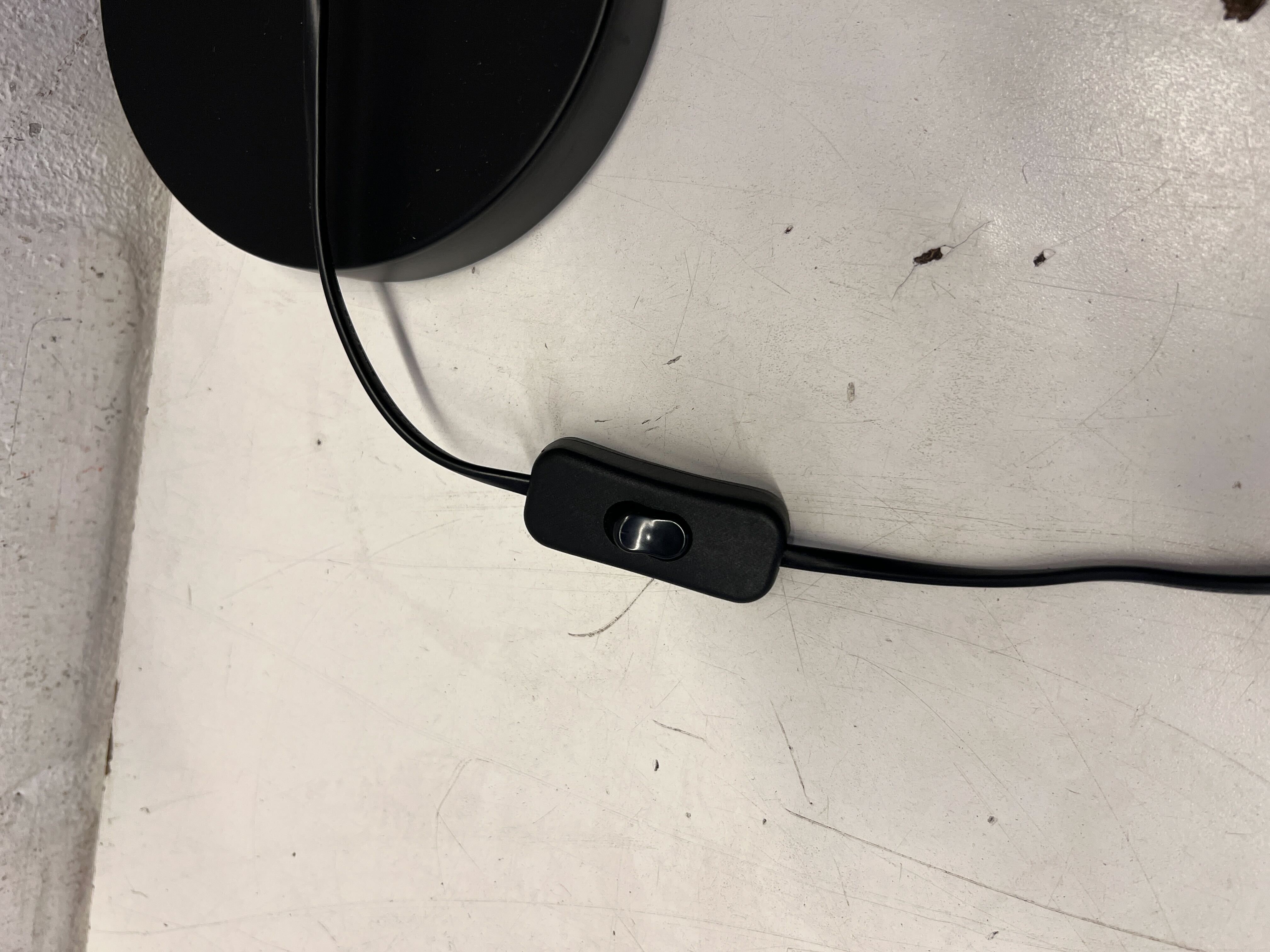 A57287Illuminate your space with this chic and modern minimalist table lamp! ✨ Featuring a striking gold cylindrical shade atop a sleek black stand and base, this lamp adds a touch of contemporary elegance to any room. Perfect as a bedside lamp, a desk companion, or an accent piece in your living area, its clean design blends seamlessly with various decor styles. Bring sophisticated lighting into your home or office with this stylish find! 🛋️ **Condition:** This lamp is in excellent pre-loved condition. The black base and stand are free from major scratches, and the gold cylindrical fitting is bright and untarnished. The bulb is included and appears to be in working order. A fantastic addition to your home or office! 💎 #ModernLighting #TableLamp #HomeDecor #MinimalistDesign #2ndhandwarehouse 🧡
