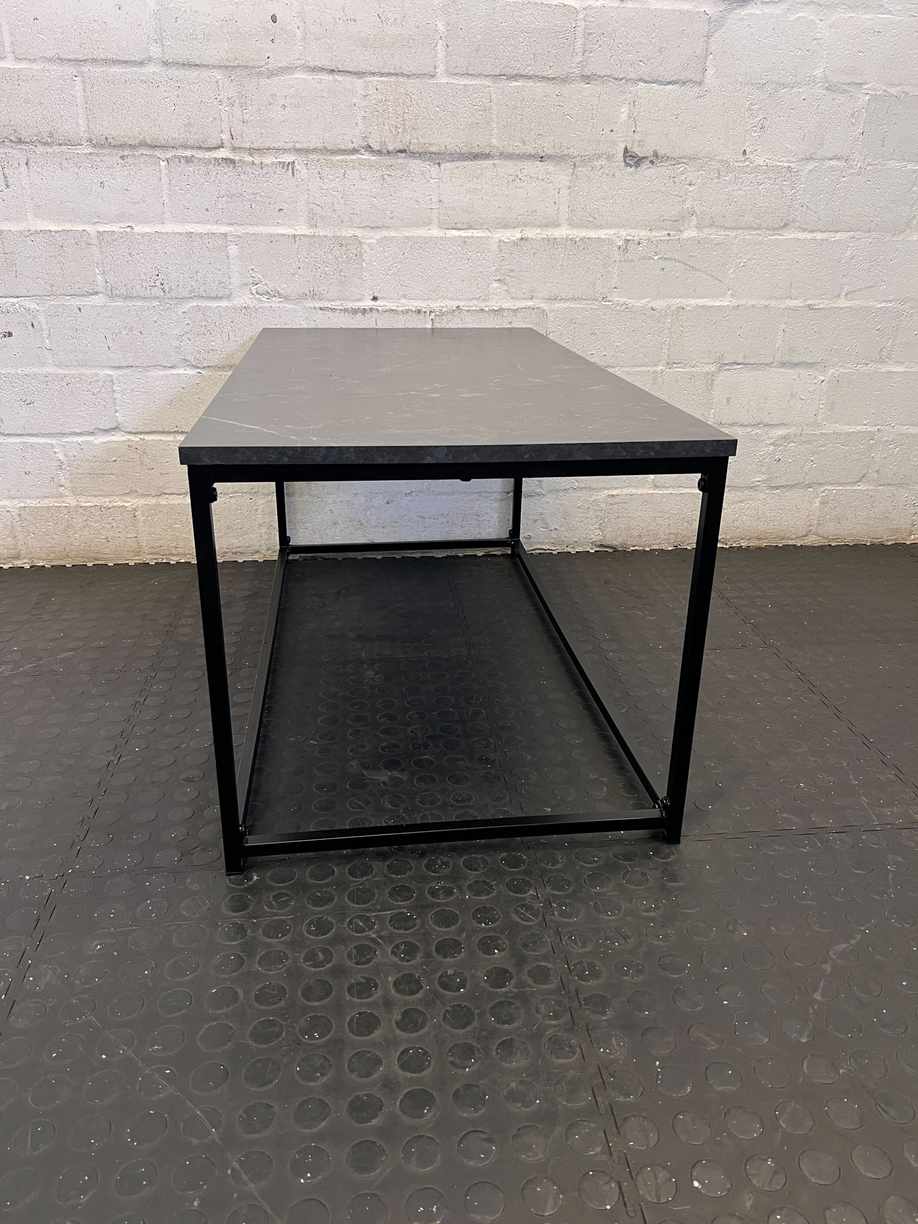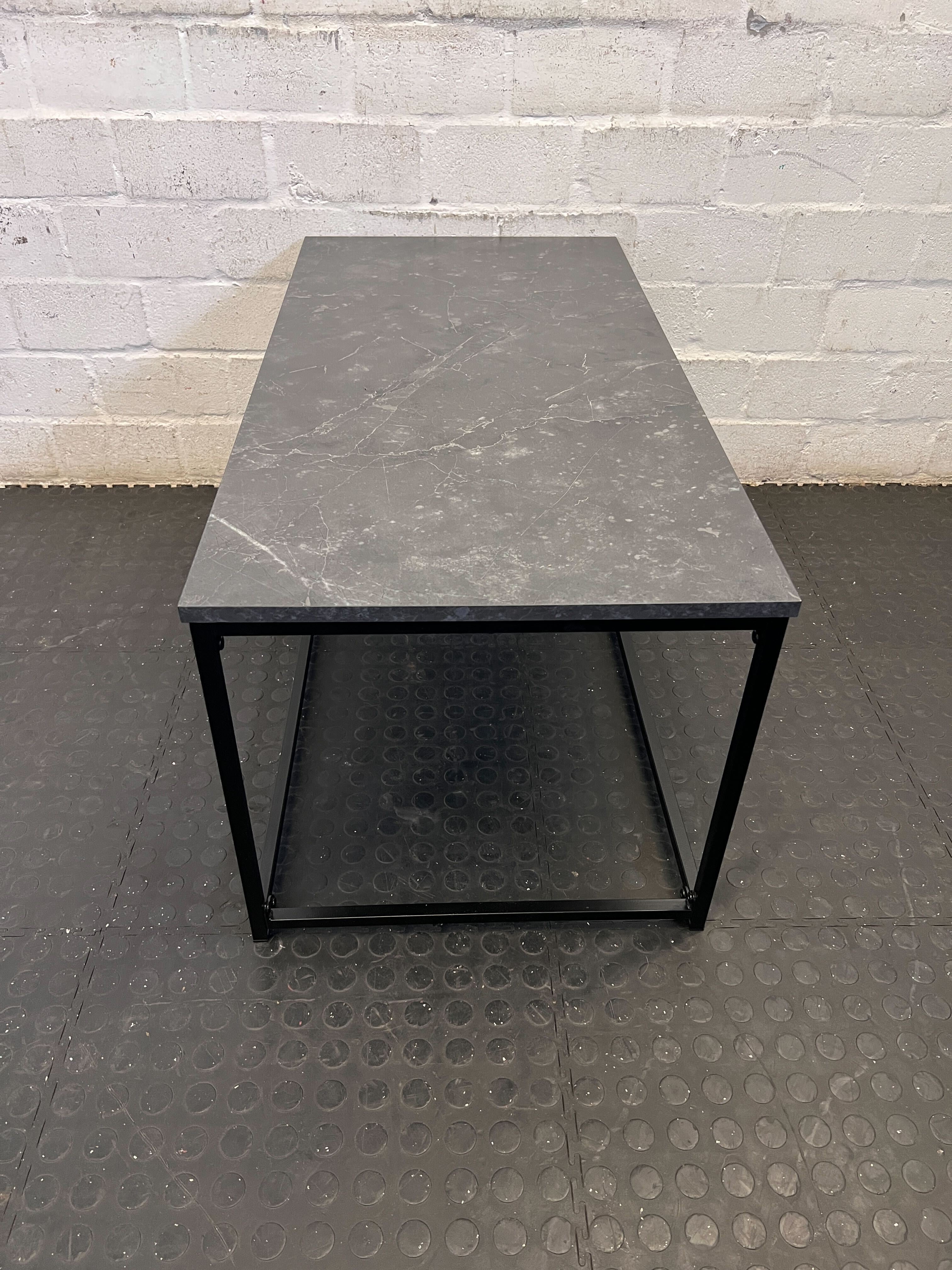 Elevate your living space with this sophisticated industrial-chic coffee table! ✨ Featuring a stylish grey marble-effect top and a sturdy black metal frame, this two-tier design offers ample surface area for your drinks, books, and decorative pieces. Its minimalist aesthetic makes it a versatile addition to any modern or contemporary home, adding a touch of elegance and functionality to your lounge or office area. 🛋️ This coffee table is in excellent pre-owned condition with minimal signs of use. The grey marble-effect top is well-maintained, and the black metal frame is sturdy and free from any significant damage visible in the image. It's ready to bring a fresh look to your space! 💎