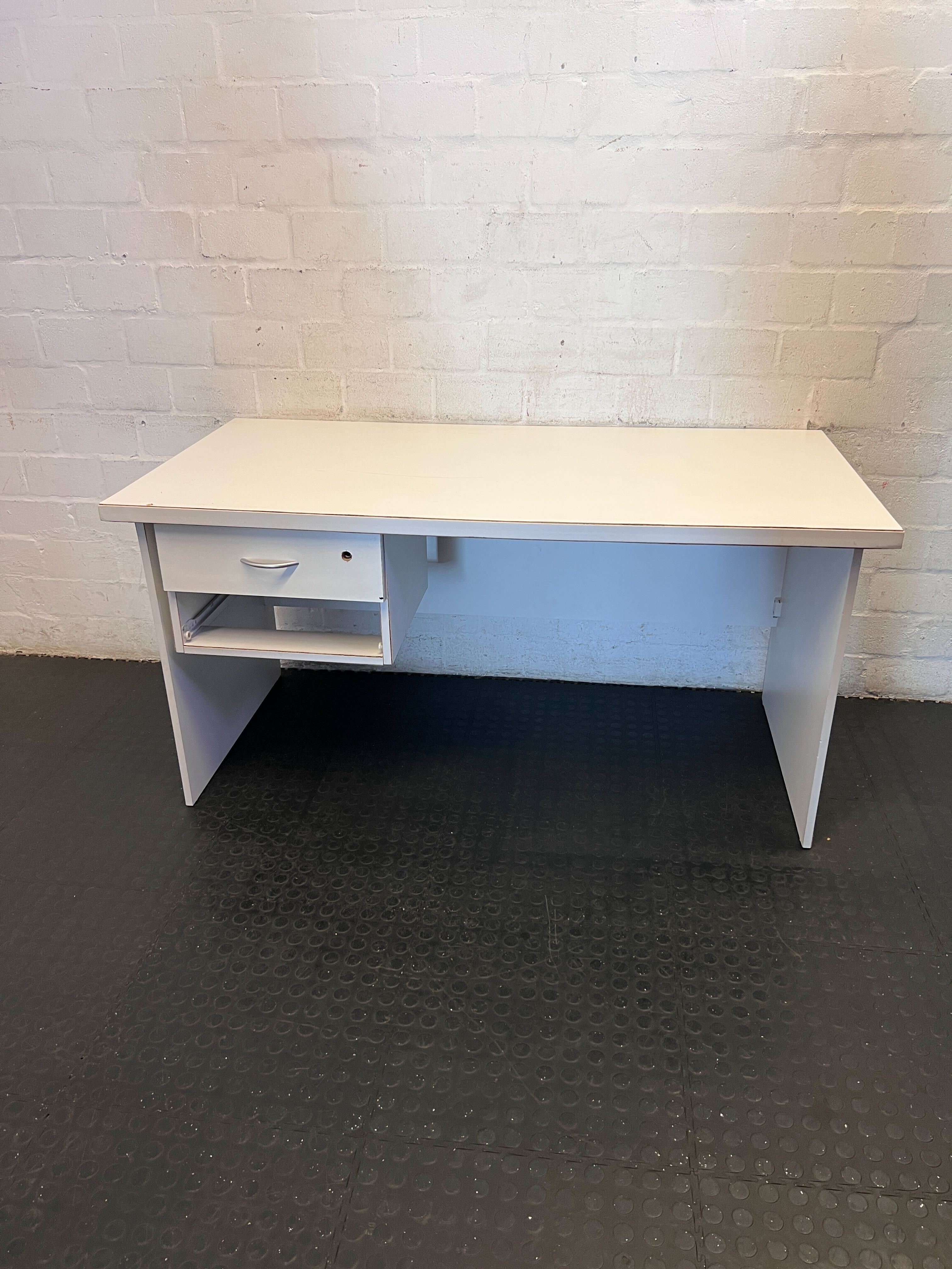 Upgrade your workspace with this practical and versatile light grey desk! ✨ Perfect for a home office, student room, or a dedicated creative corner, this desk offers a clean aesthetic and functional storage. Its compact size makes it ideal for smaller spaces without compromising on utility. The integrated drawer and open shelf provide convenient spots for your essentials, keeping your desktop clutter-free and organized. This desk is a great find for anyone looking for a simple, efficient, and space-saving workstation.This desk is in good second-hand condition with minor signs of wear consistent with its age and previous use. The desk surface appears clean, and the drawer operates smoothly. There may be some light scuffs or superficial marks on the laminate, but no major damage or structural issues are apparent from the image. It's ready for its new home! 🛠️