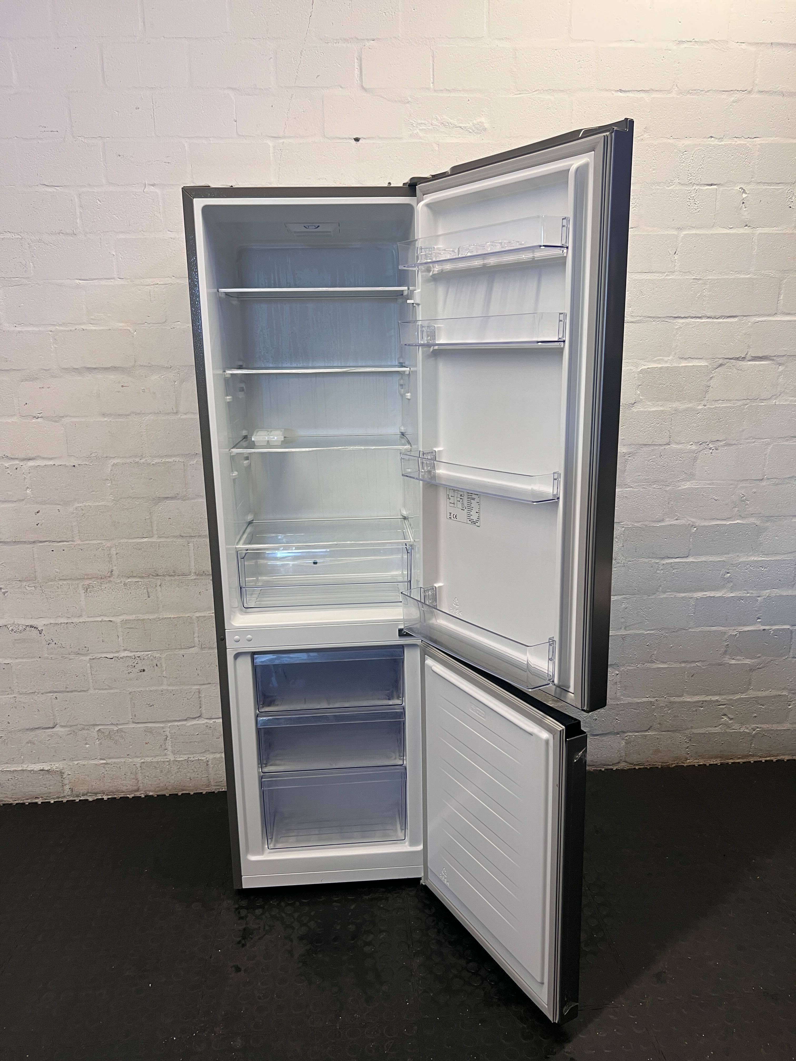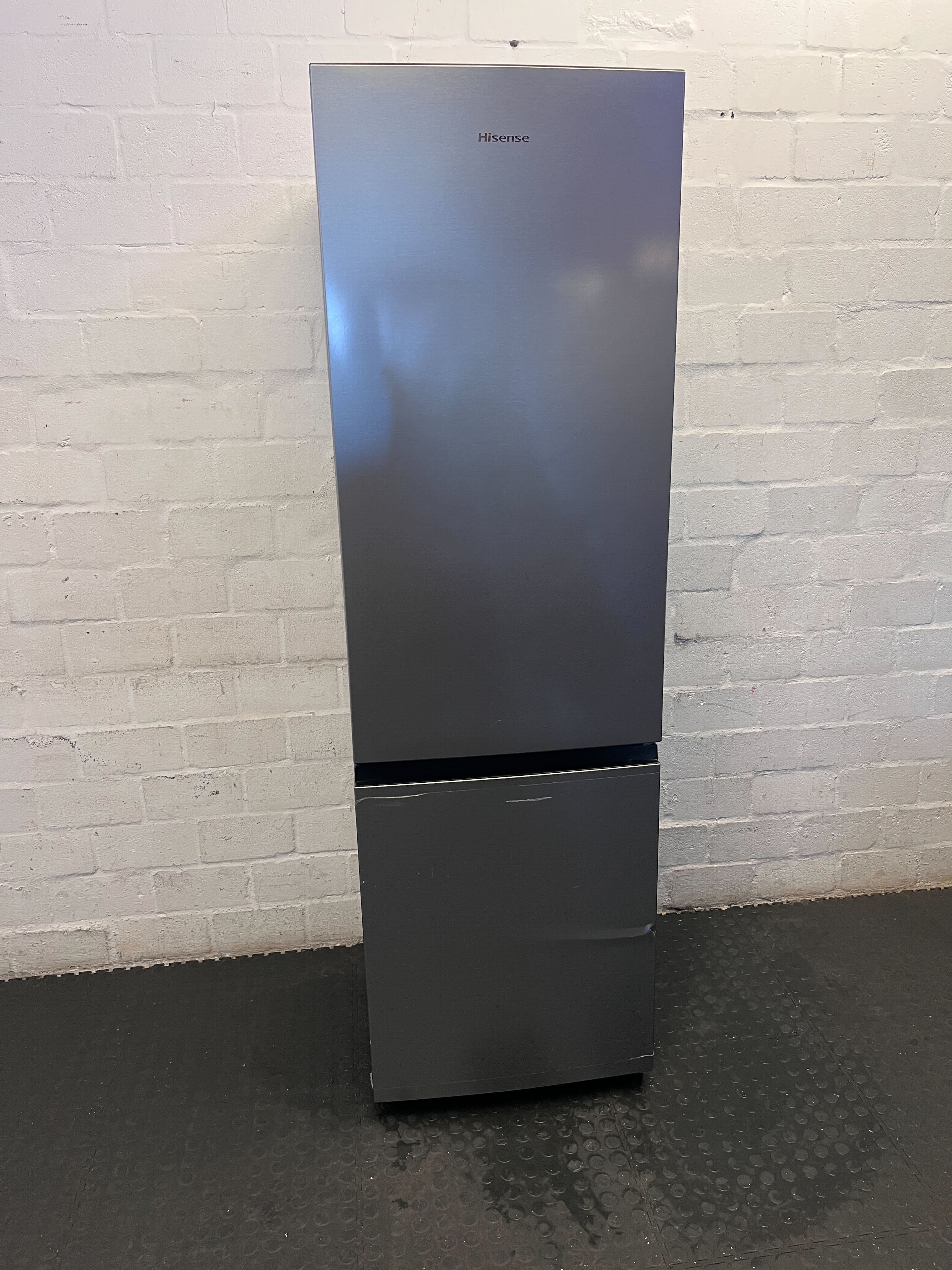 This sleek Hisense Silver Fridge Freezer is a fantastic addition to any kitchen, blending modern style with practical functionality. Perfect for singles, couples, or small families, it offers ample space for all your fresh and frozen essentials. Its contemporary design will effortlessly elevate your kitchen aesthetic! ✨ Enjoy the convenience of a dedicated freezer section at the bottom, making organization a breeze.This appliance is in good working order. There are some visible dents on the bottom freezer door, as well as minor scuffs and marks consistent with normal second-hand use on the main body. Please refer to the images for a detailed view of its condition.