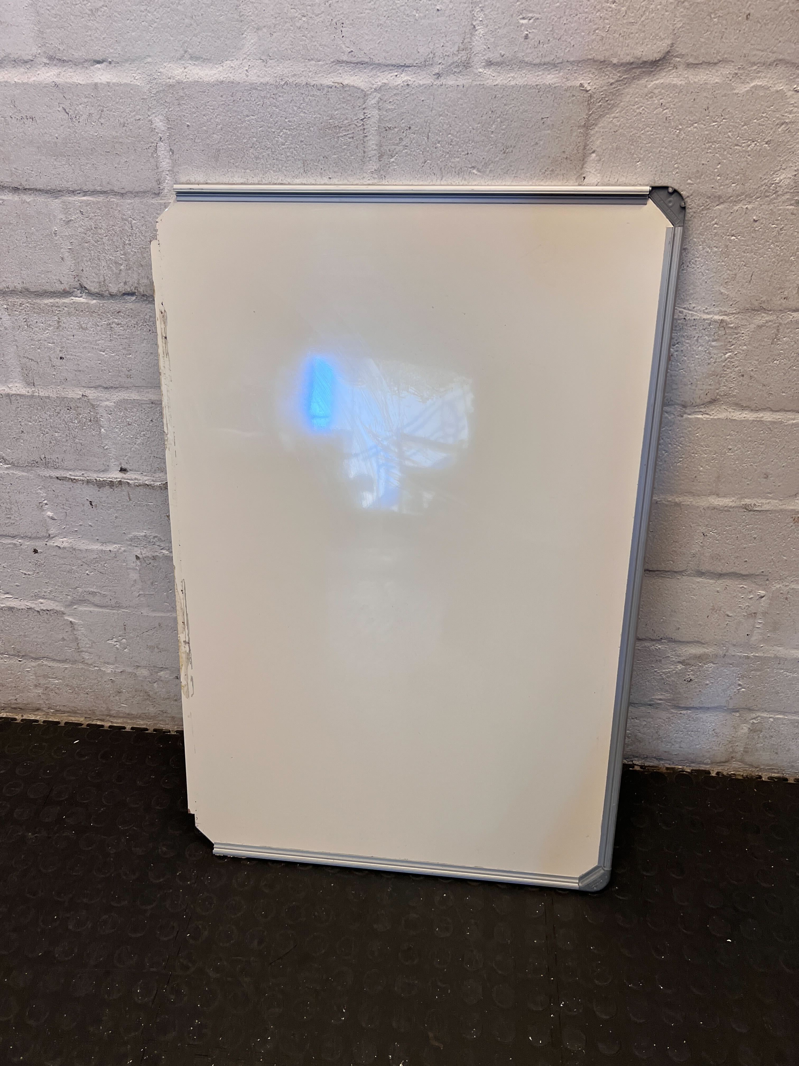Organize your thoughts and tasks with this practical pre-loved whiteboard! ✨ Ideal for any home office, classroom, or workshop, this dry-erase board provides a versatile space for brainstorming, daily reminders, or important notices. Its classic design with a sturdy frame ensures it will blend seamlessly into any environment, helping you keep track of your 'to-dos' with ease. This whiteboard is a genuine second-hand item and displays clear signs of its previous life. As seen in the images, there are existing handwritten notes on the surface which will require cleaning, and the metal frame exhibits some minor scuffs and marks consistent with normal wear and tear. Despite these cosmetic indications of use, the whiteboard surface is fully functional for dry-erase markers.