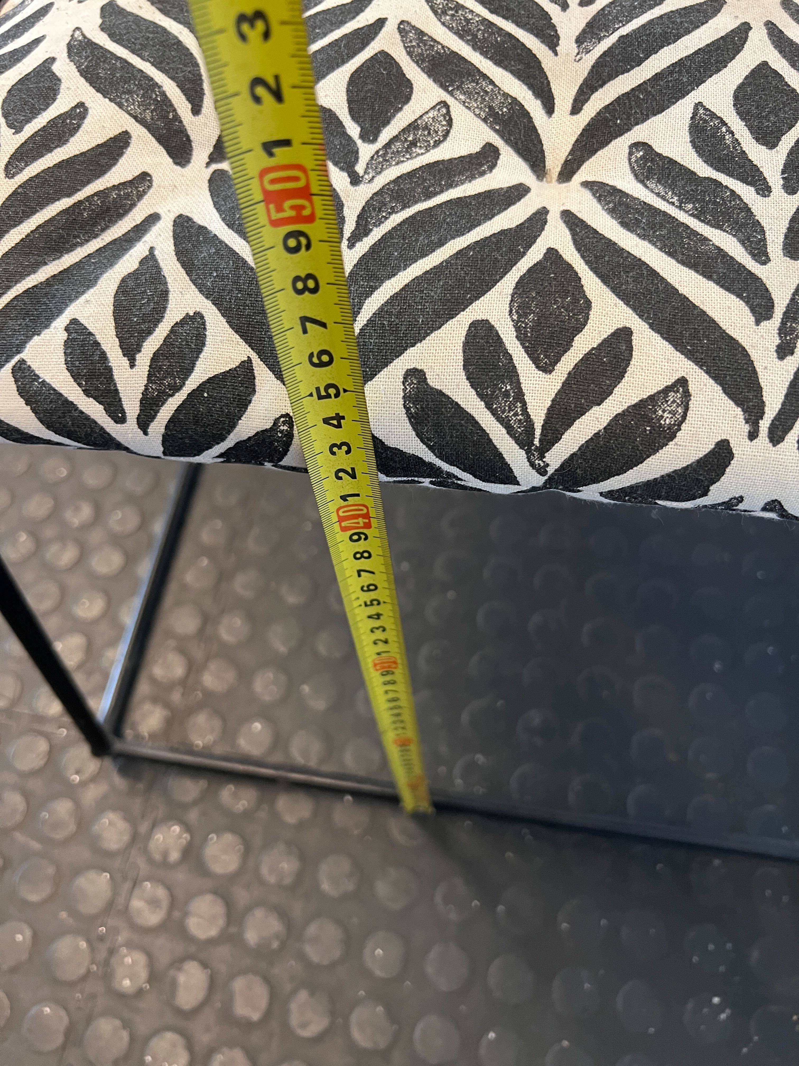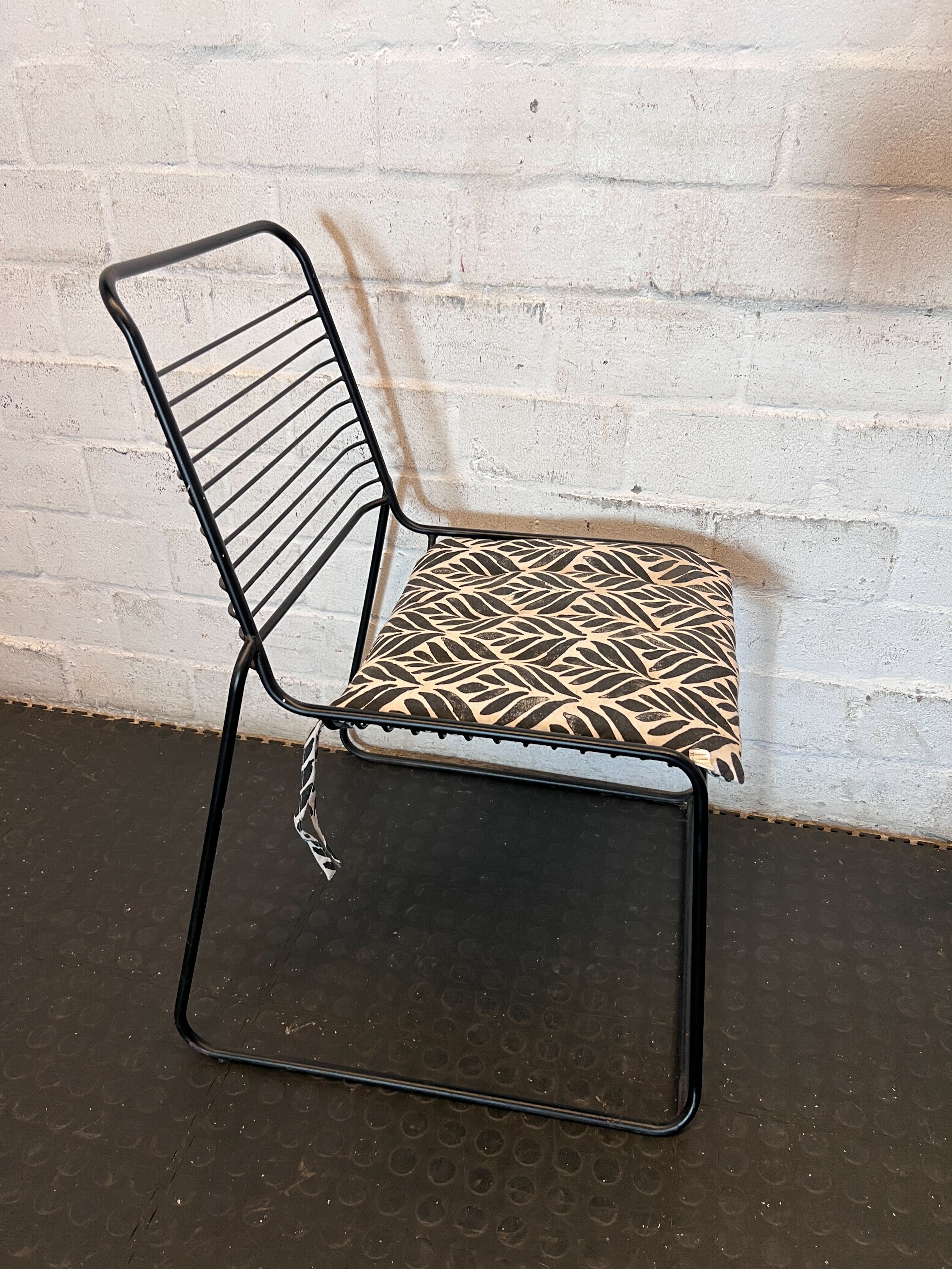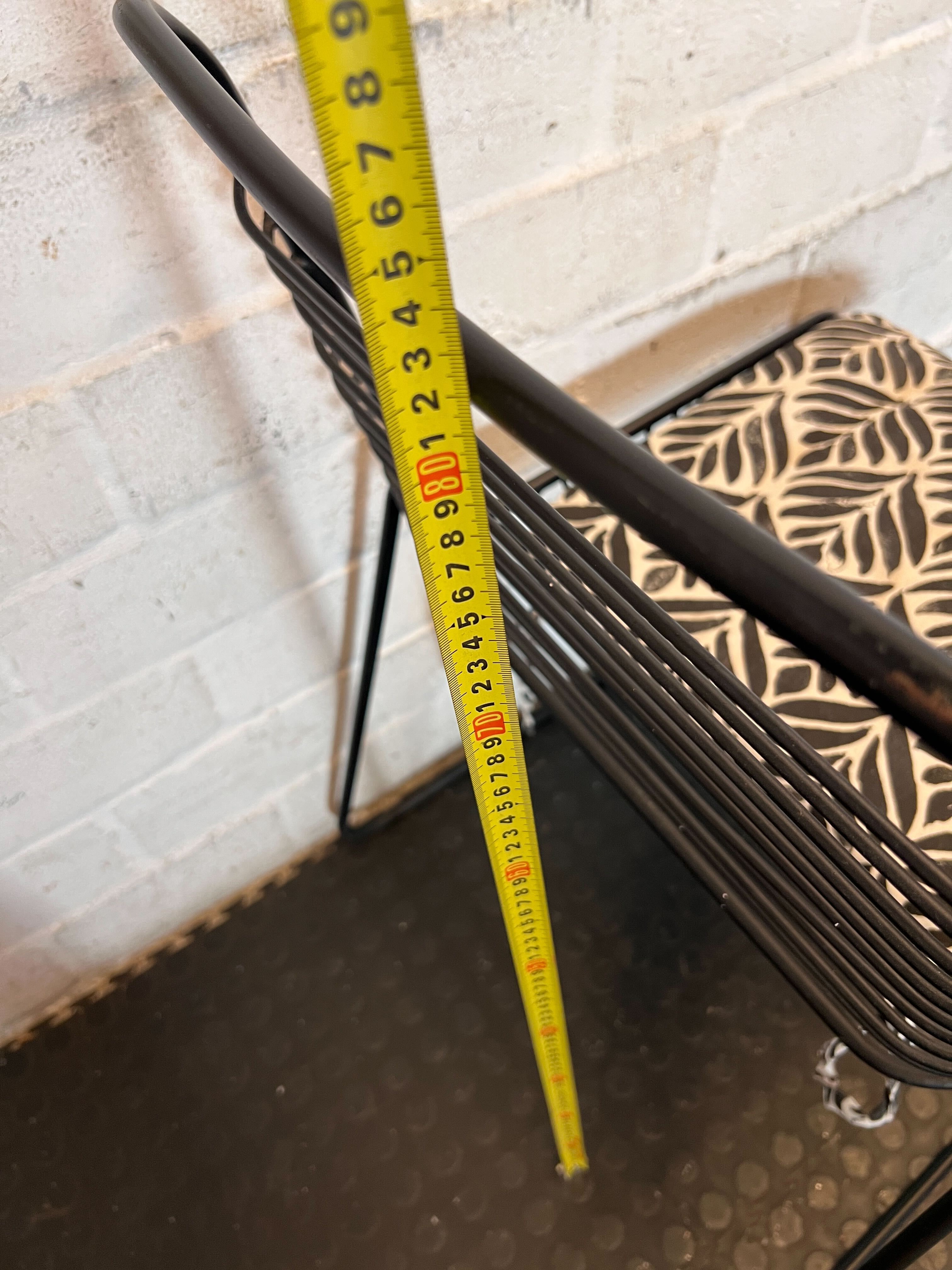 Add a touch of modern industrial flair to your space with this stylish black metal chair! ✨ Featuring a sleek, minimalist black metal frame and a striking black and white leaf-patterned fabric seat, this chair is perfect as a dining chair, a chic desk chair, or a trendy accent piece in any room. Its compact design makes it versatile for smaller spaces, while its unique pattern adds a pop of personality. A fantastic addition to a contemporary or eclectic interior. 🛋️ This chair is in good pre-owned condition. The black metal frame is sturdy with minor signs of wear consistent with age and previous use. The patterned fabric seat is clean and vibrant, showing minimal signs of use. Please refer to the images for a detailed view of its current state.