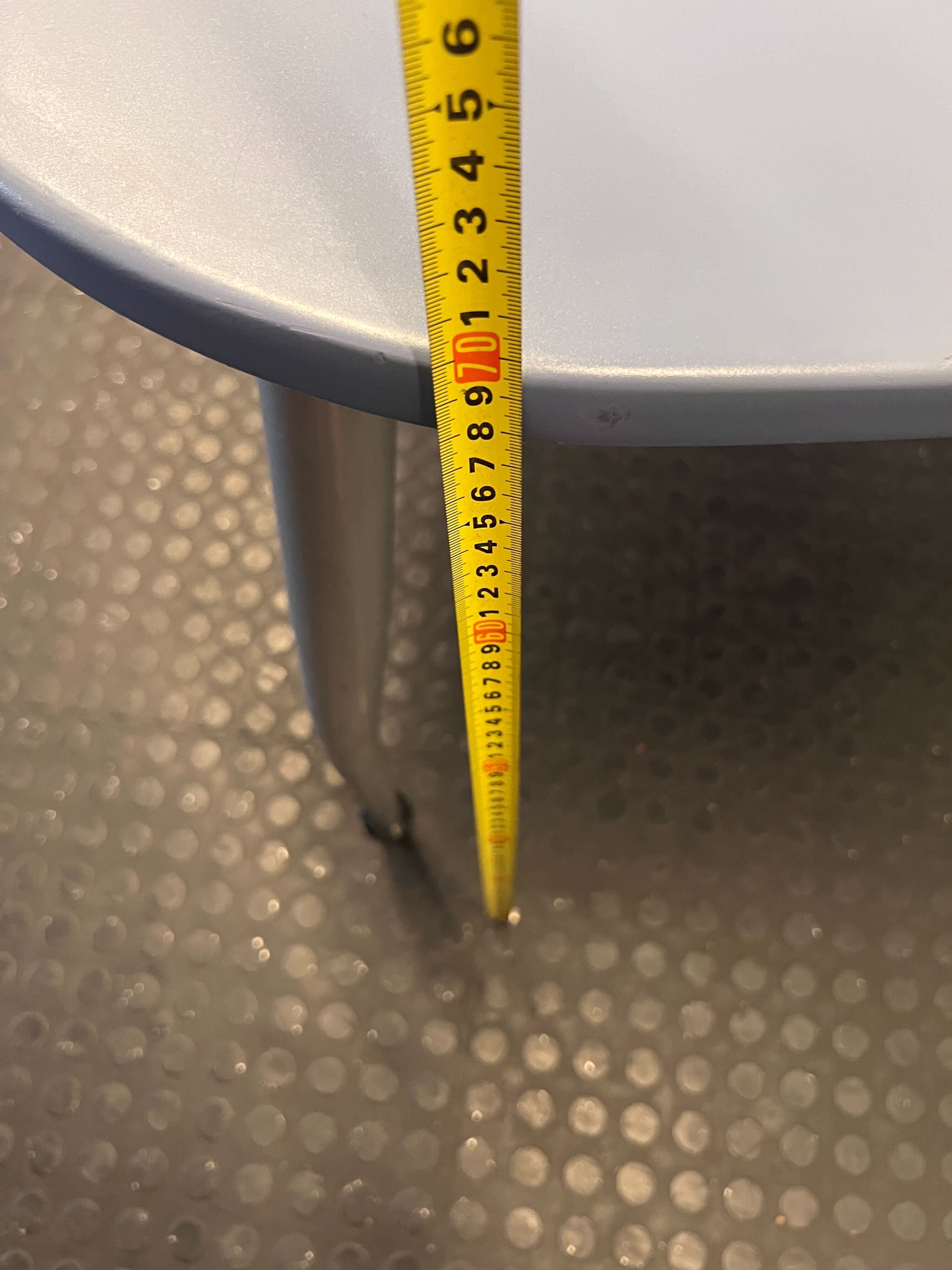 Add a touch of contemporary elegance to your living space with this uniquely designed modern grey triangular coffee table. Its distinctive shape and sleek grey finish make it a versatile accent piece, perfect for holding your favorite books, a cup of coffee, or displaying decorative items. The gracefully curved legs add a subtle stylish flair, making it an eye-catching addition to any room. ✨ This charming table is in good, pre-loved condition. There may be minor signs of wear consistent with its previous life, such as small surface scuffs, but no major damage is apparent from the images. It's ready to bring its modern appeal into your home! 🛋️