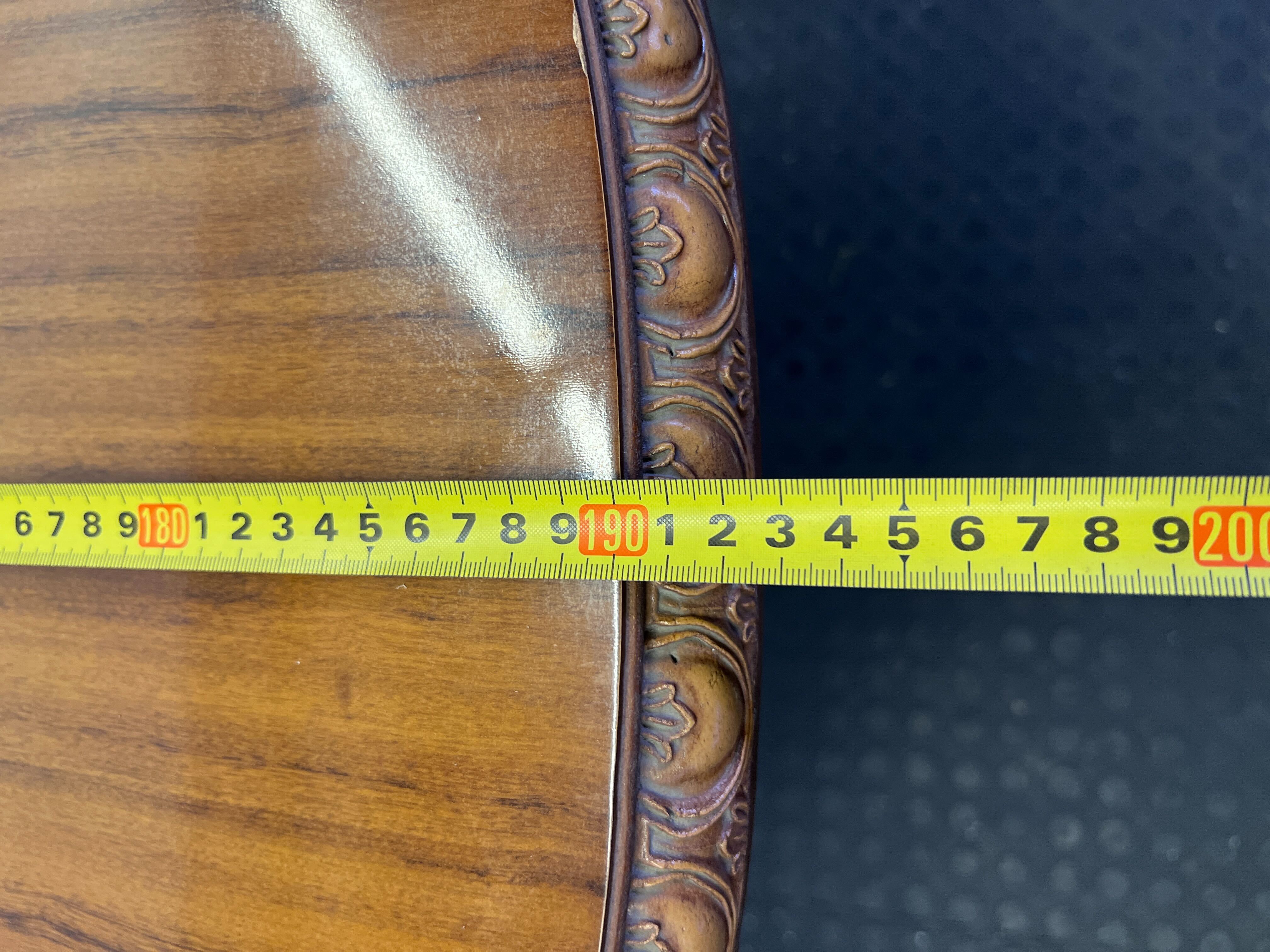 Step back in time with this beautiful oval dining table, featuring a classic wood finish and an elegant double pedestal base. Its intricate carved details around the tabletop edge and on the pedestals add a touch of timeless sophistication to any dining space. Perfect for intimate dinners or family gatherings, this table promises to be a stunning centerpiece in your home. ✨ This pre-loved dining table is in good vintage condition with visible signs of age and use, as expected from a second-hand item. There are some minor scuffs, scratches, and wear on the tabletop and legs, consistent with its history and character. Please examine all images for a comprehensive view of its condition.