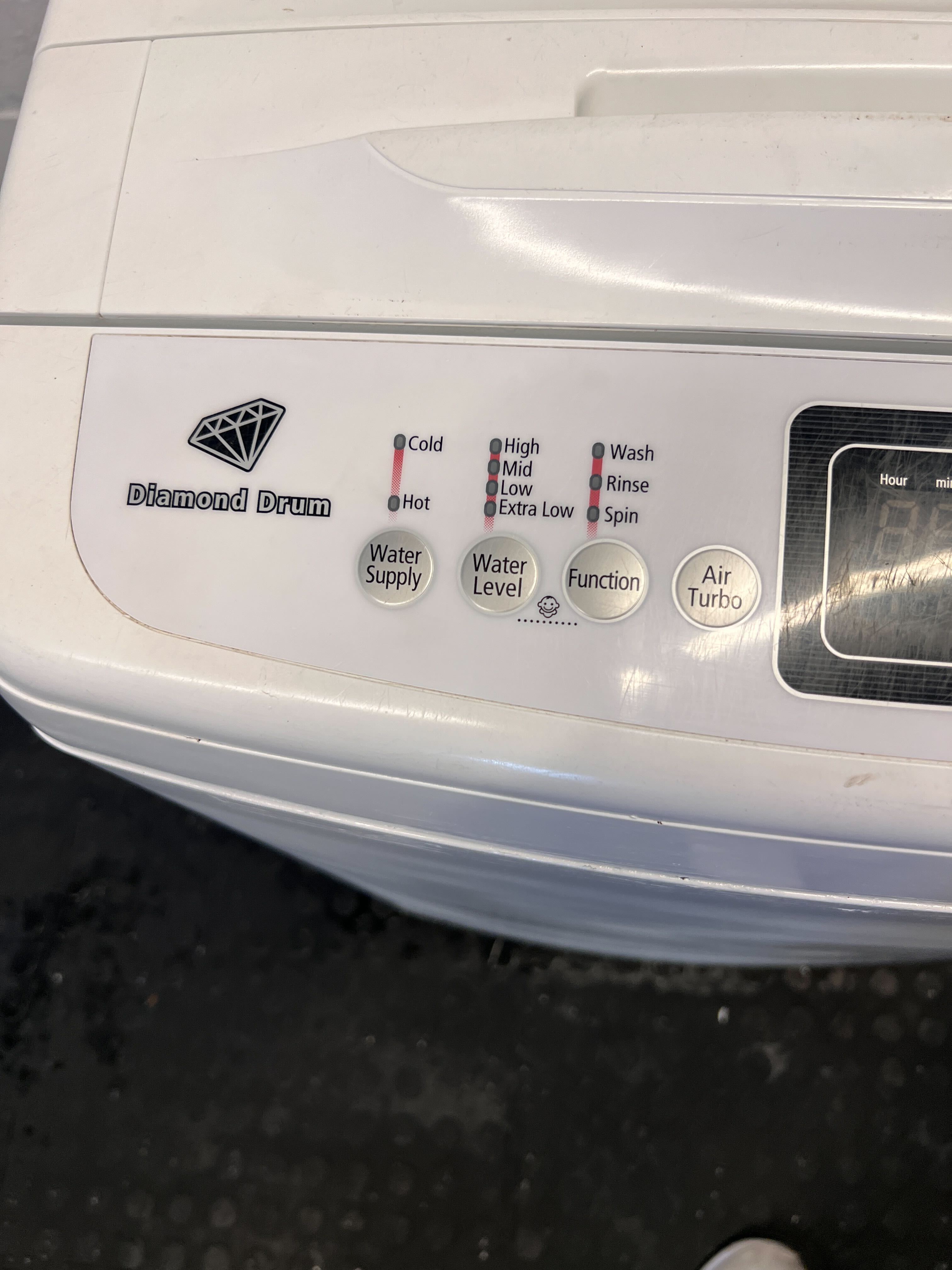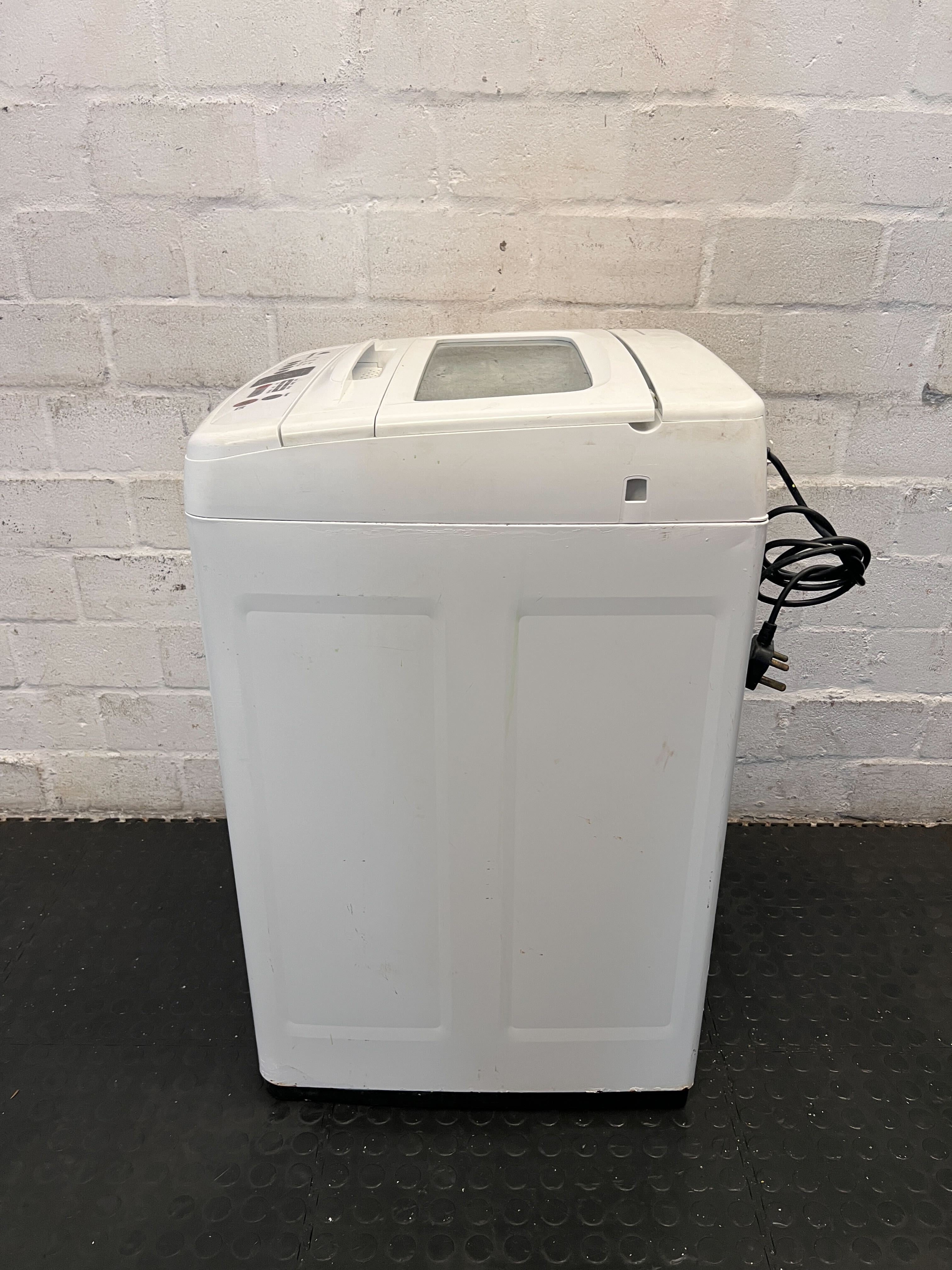 Upgrade your laundry routine with this reliable white top-loading washing machine! ✨ Perfect for apartments, smaller homes, or as a secondary washer, this appliance offers efficient cleaning in a compact footprint. Its user-friendly controls make operation a breeze, ensuring your clothes come out fresh and clean every time. This washing machine is in good, used condition. There are minor scuffs and marks consistent with normal use, but no significant damage or dents are visible. The control panel appears clean and functional, and the exterior maintains a clean white finish.
