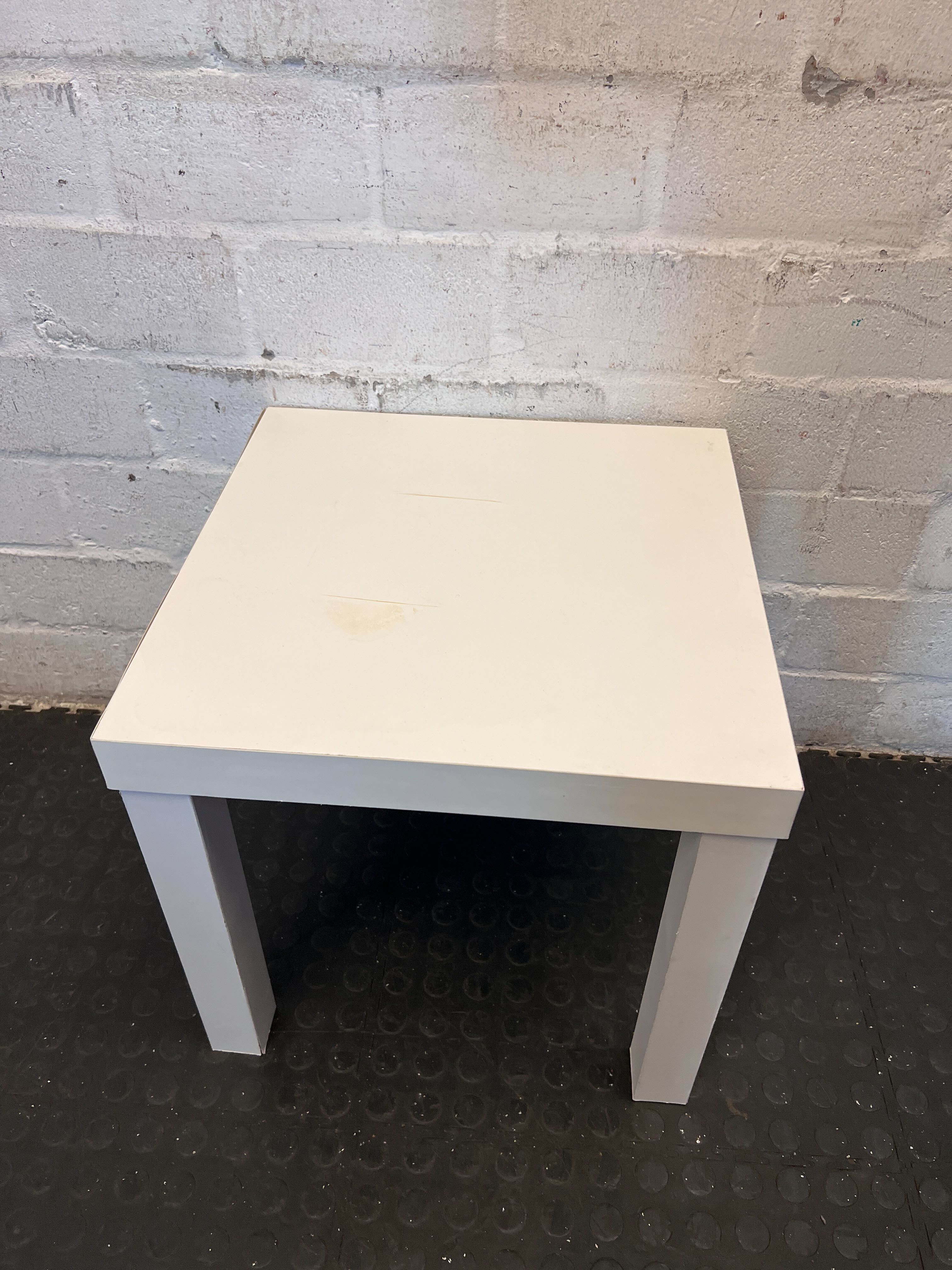 Elevate your living space with this chic light grey square side table! ✨ Its clean lines and minimalist design make it a versatile addition to any room. Perfect as a stylish end table next to your sofa, a compact bedside table, or an accent piece to display your favorite decor items. This table offers practical surface space without overwhelming your room, blending seamlessly with various interior styles from modern to Scandinavian. A true gem for compact living or adding functional elegance. 🛋️💎 Good second-hand condition with minor signs of use consistent with age. The surface is clean, and the structure is sound, ready to bring understated style to its new home.