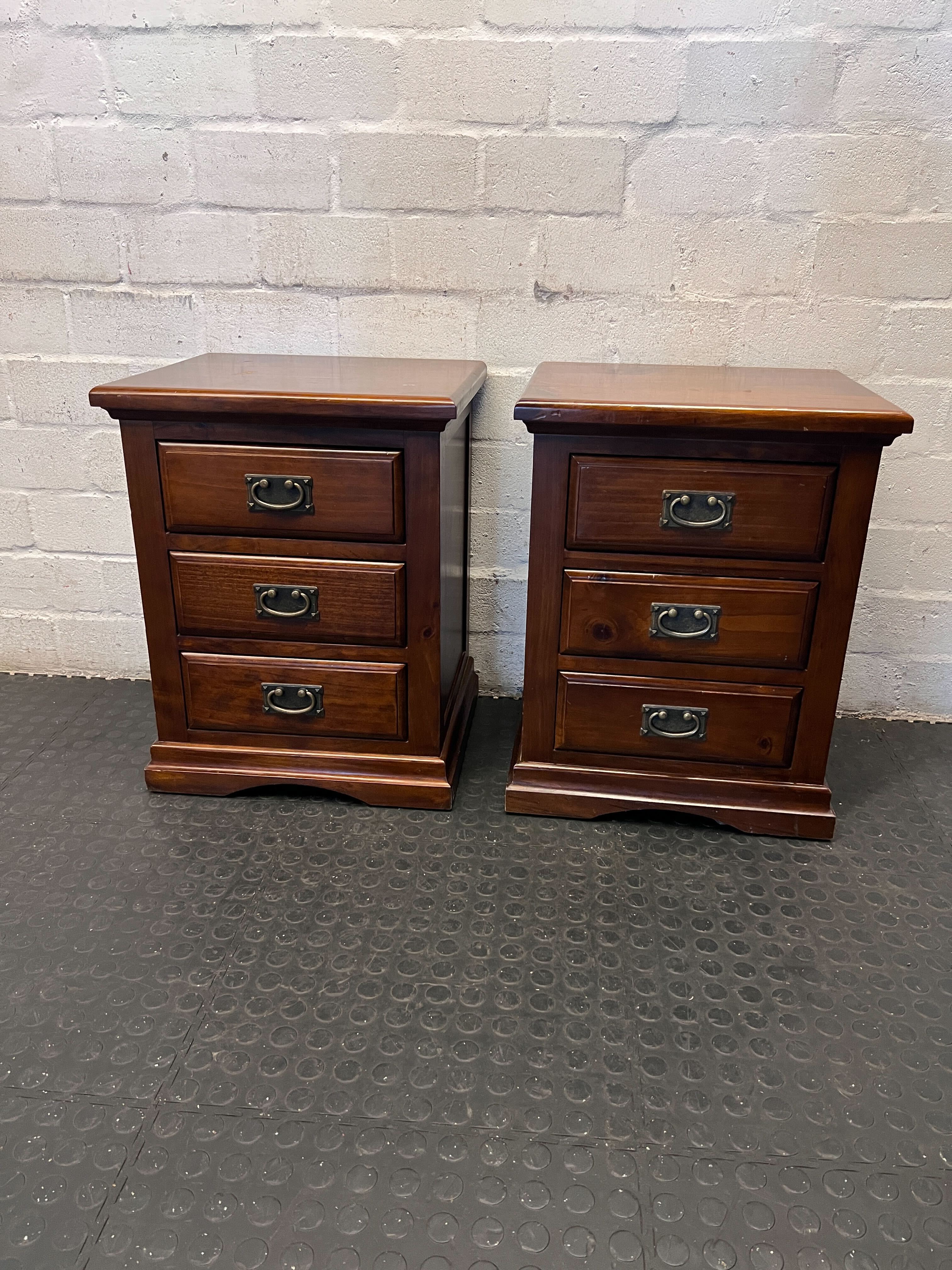 Timeless Dark Wood 3-Drawer Bedside Table