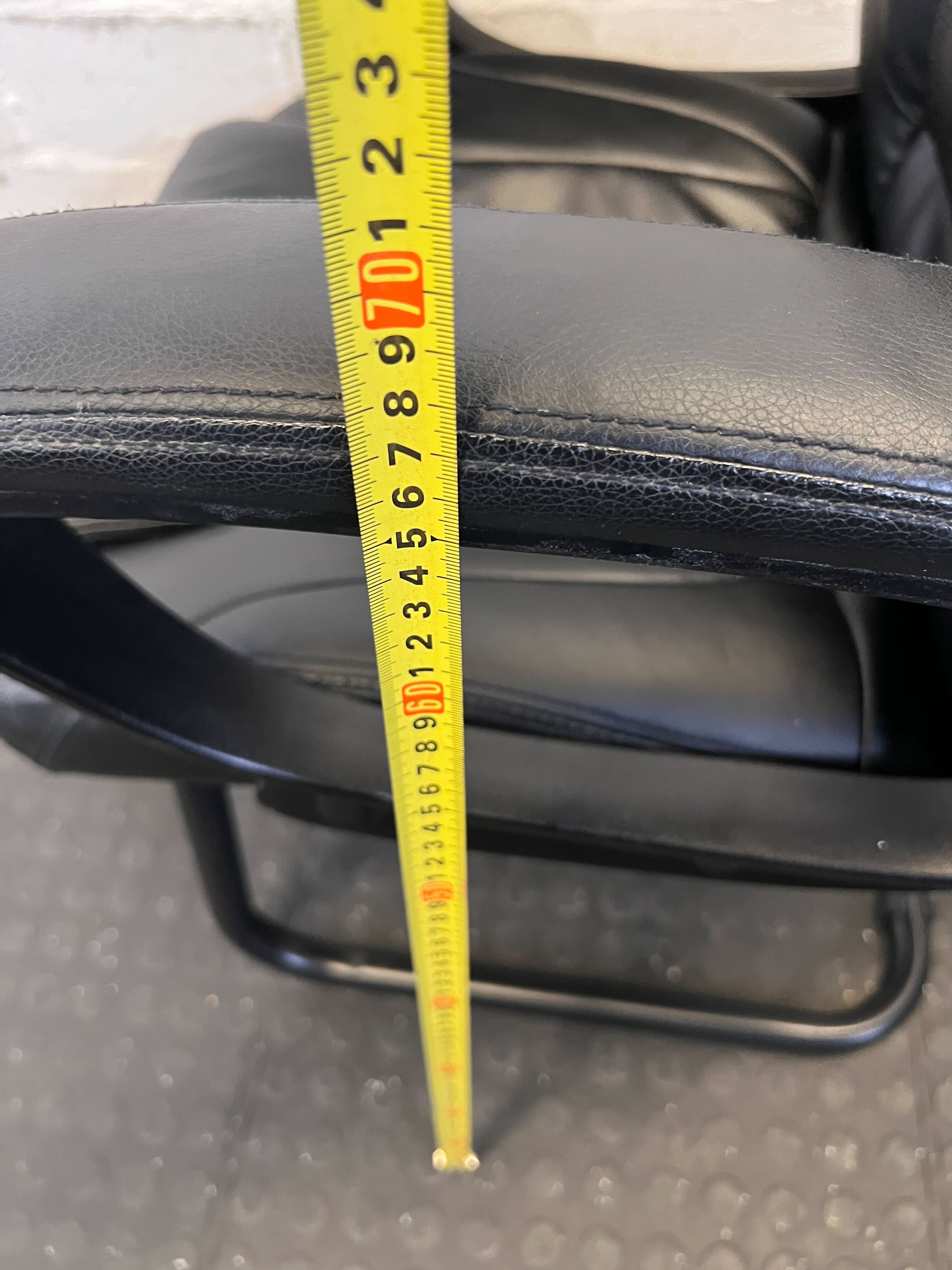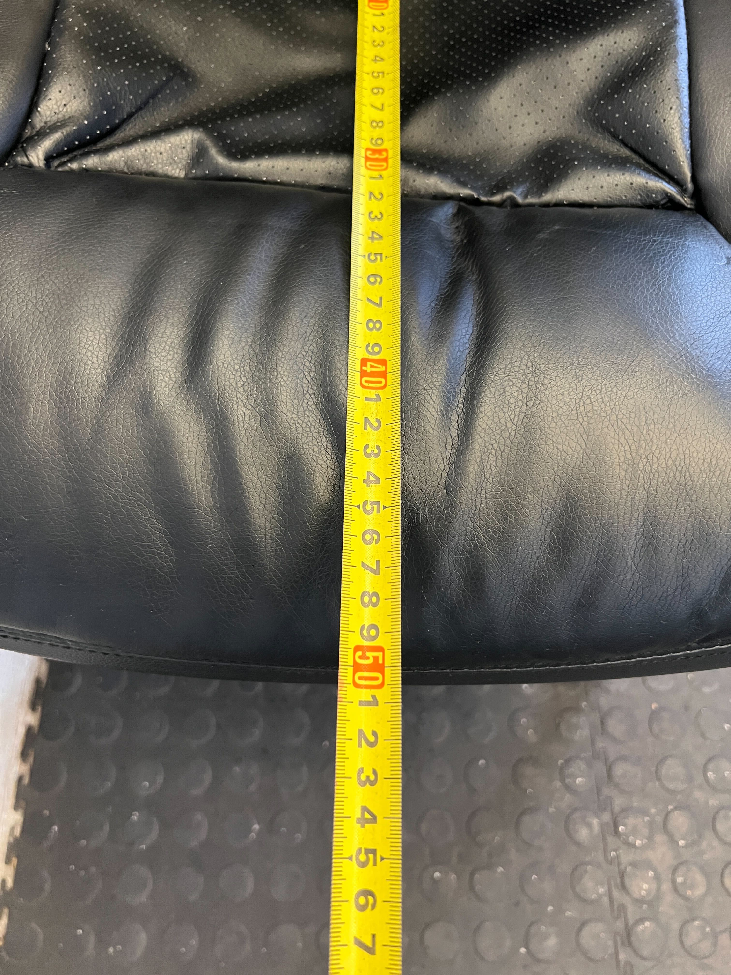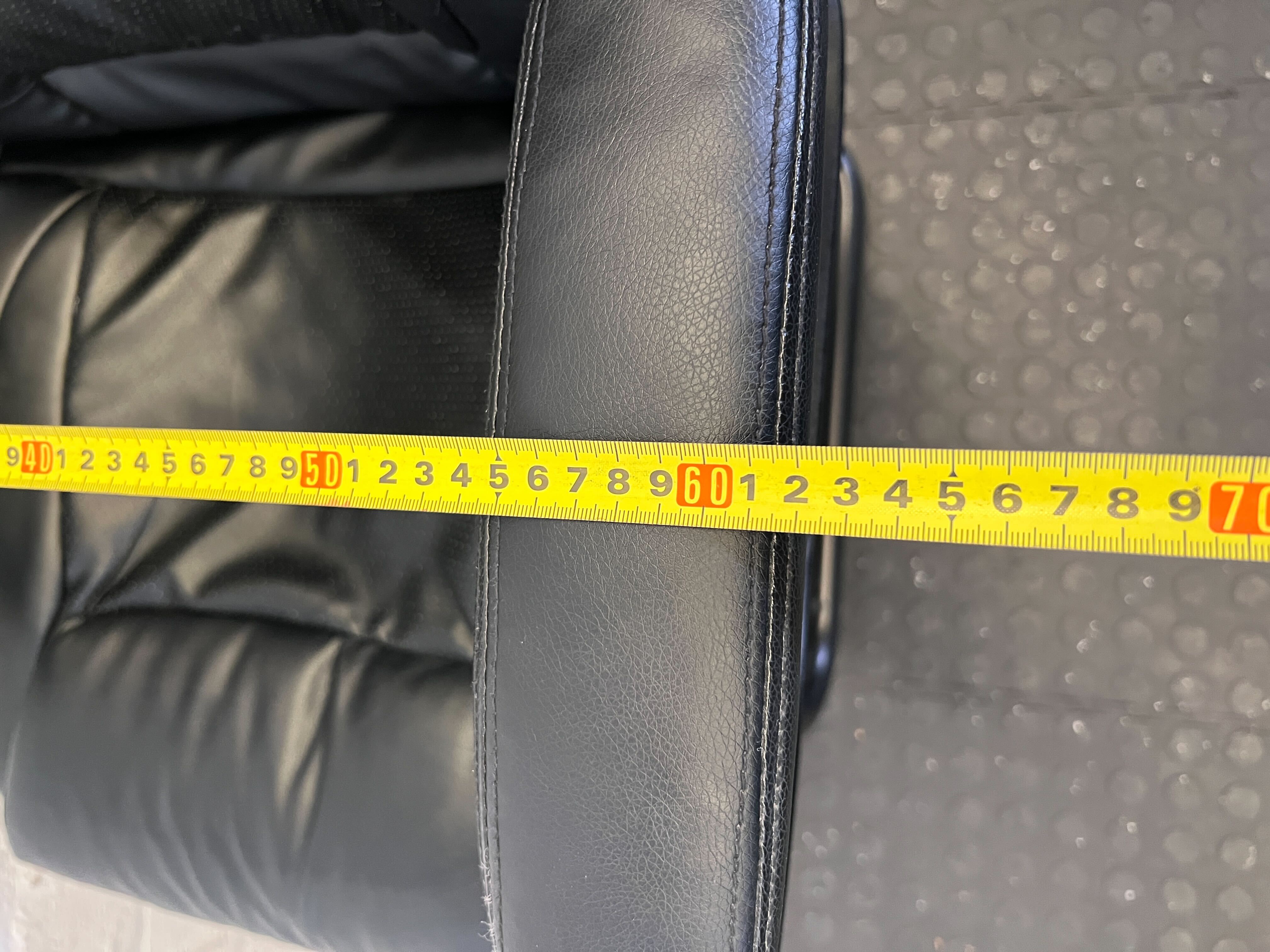 Upgrade your workspace with this comfortable black executive office chair! ✨ Perfect for long hours at your desk, this chair offers a padded back and arms for excellent support and a professional look. Its sleek design makes it a great addition to any home office or corporate setting. Achieve productivity in style and comfort! This pre-loved executive chair is in good condition with visible signs of use. There is creasing and minor wear on the seat and armrests, consistent with a used item. All functionalities are intact, offering reliable comfort. Please refer to images for full condition details.