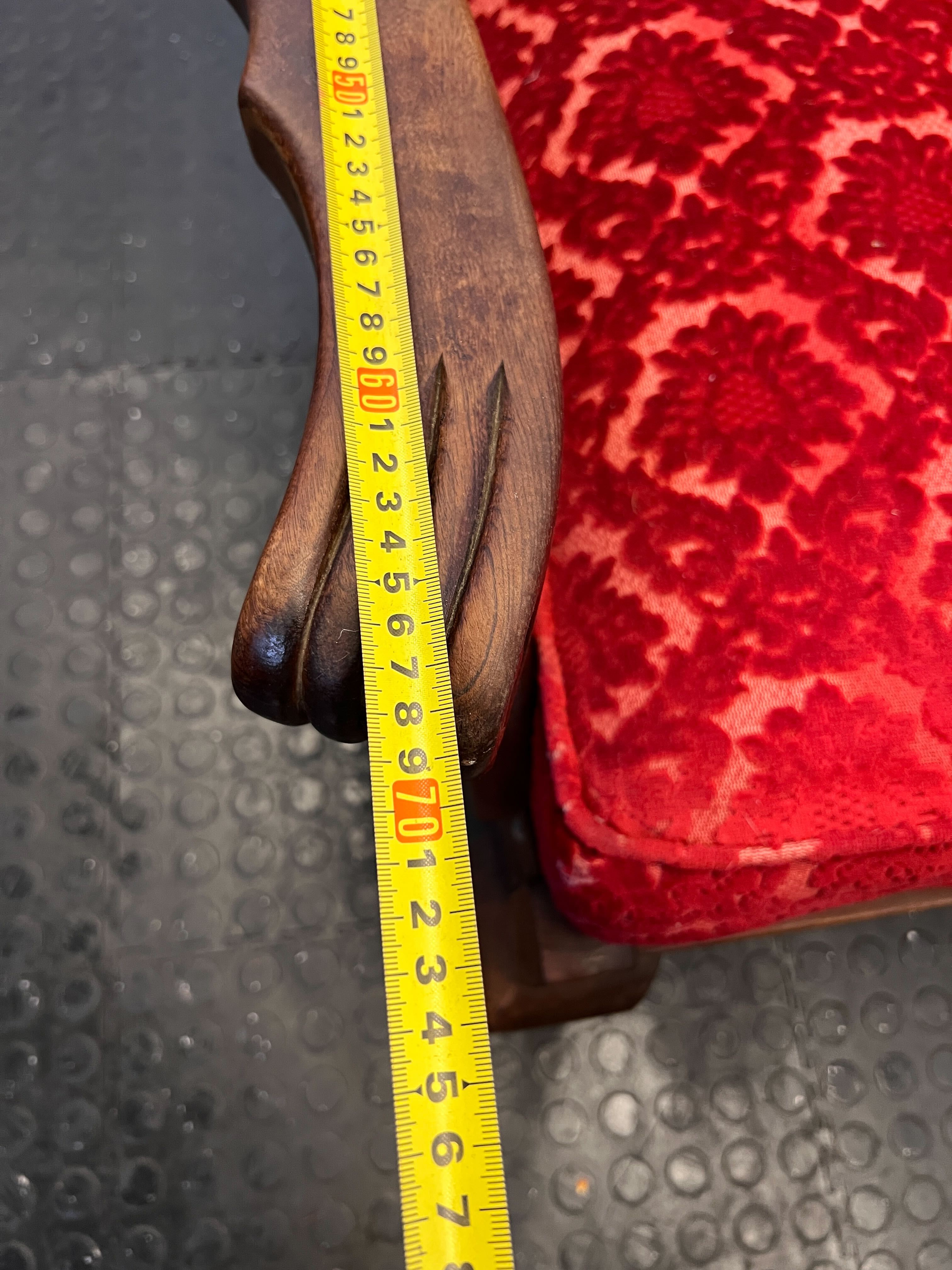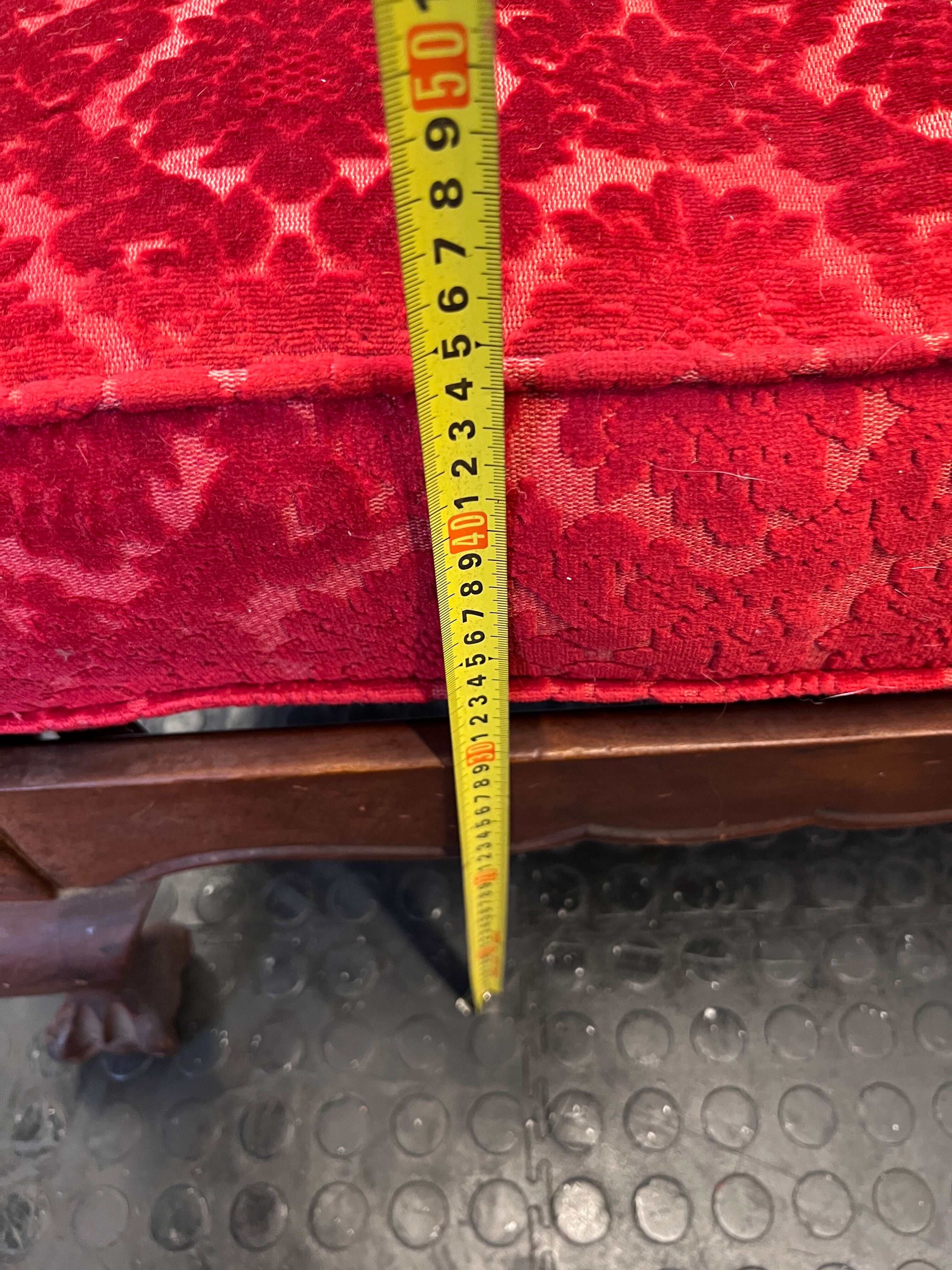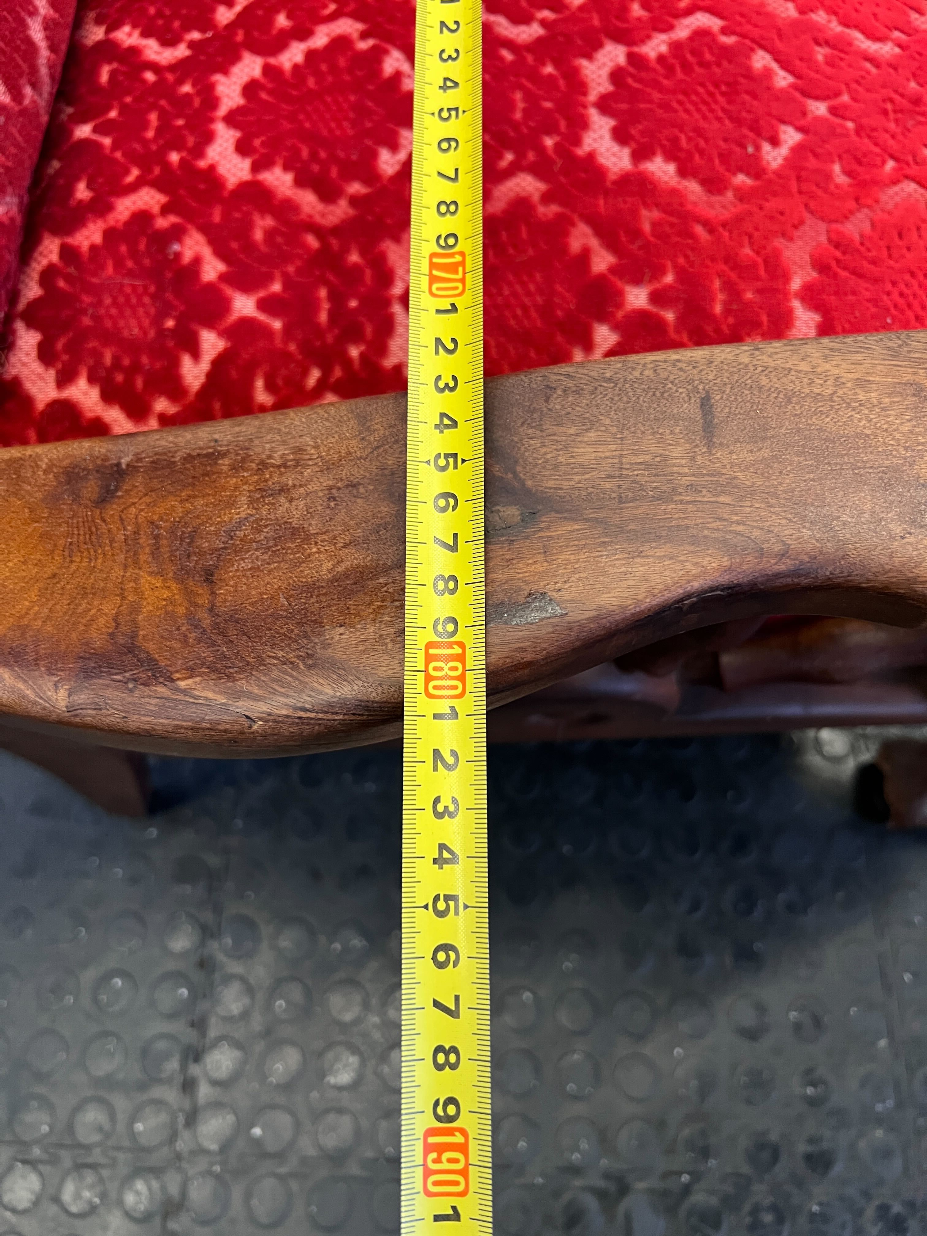 A55843 This striking 3-seater couch features a vibrant red fabric with a classic pattern, set off by beautifully carved wooden accents. While it showcases minor wear, its exquisite craftsmanship and timeless charm make it a perfect addition to any living room. Imagine enjoying cozy movie nights or entertaining guests in style! 🛋️🧡 #RedCouch #VintageFurniture #CapeTownCouch #2ndHandWarehouse