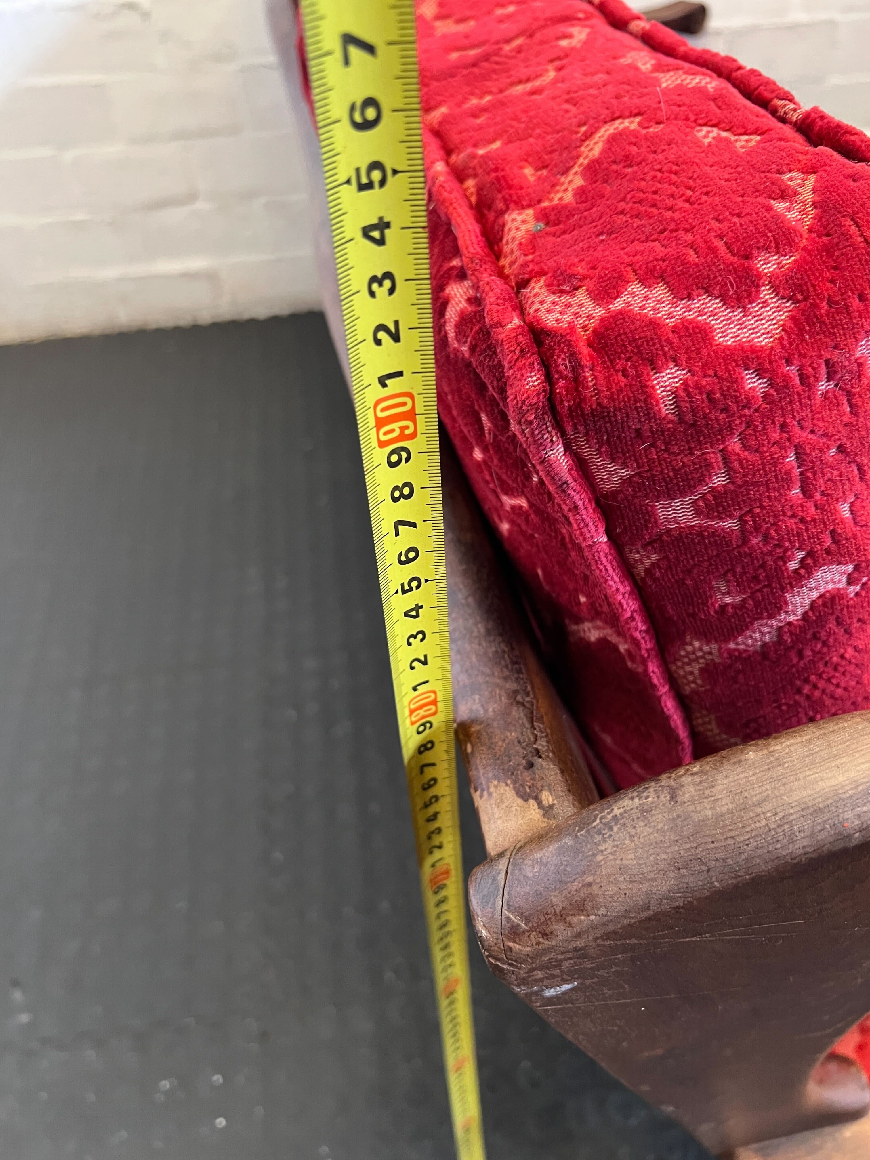 Elegant Red Fabric 3-Seater Couch with Wooden Accents - REDUCED
