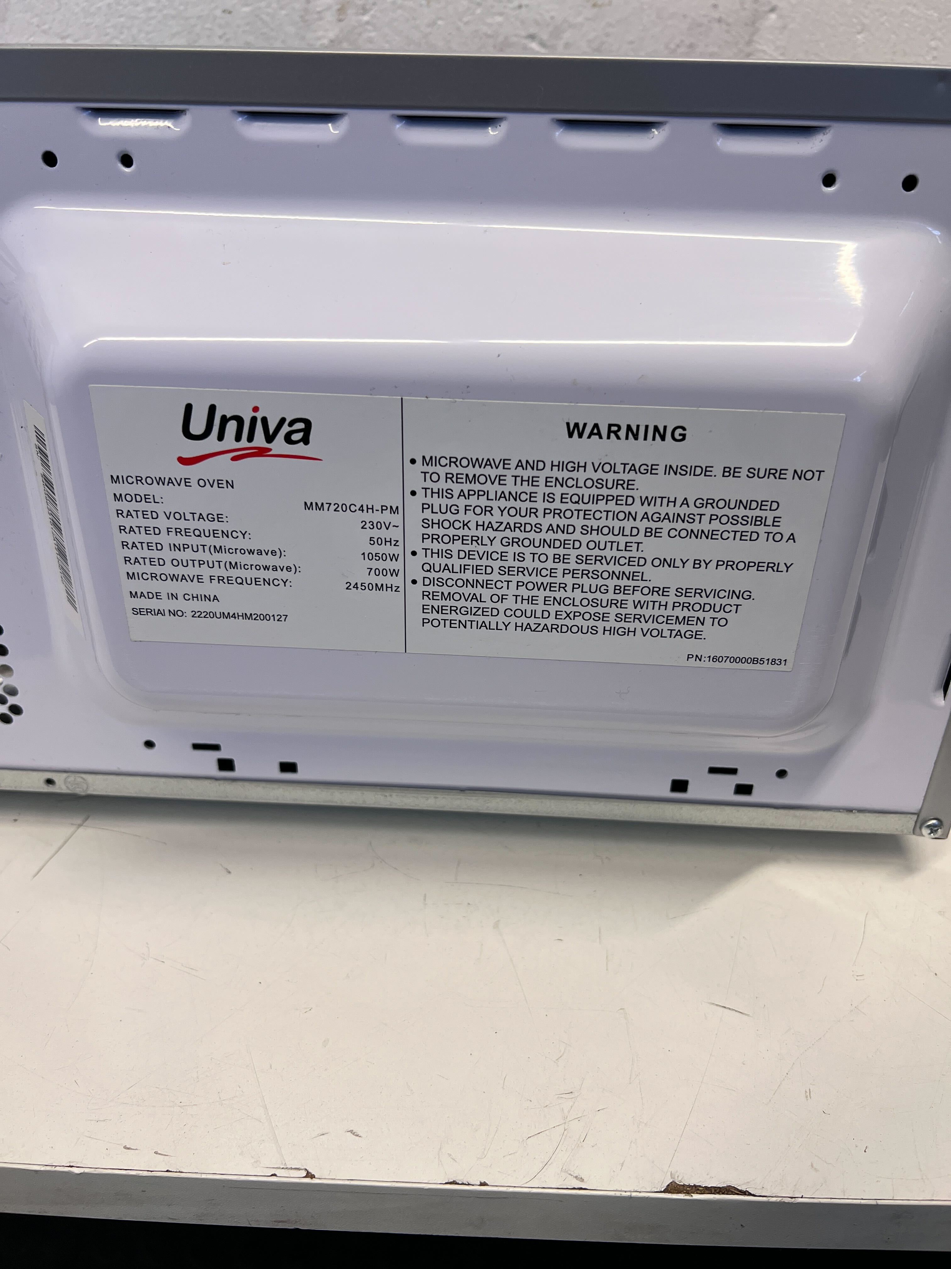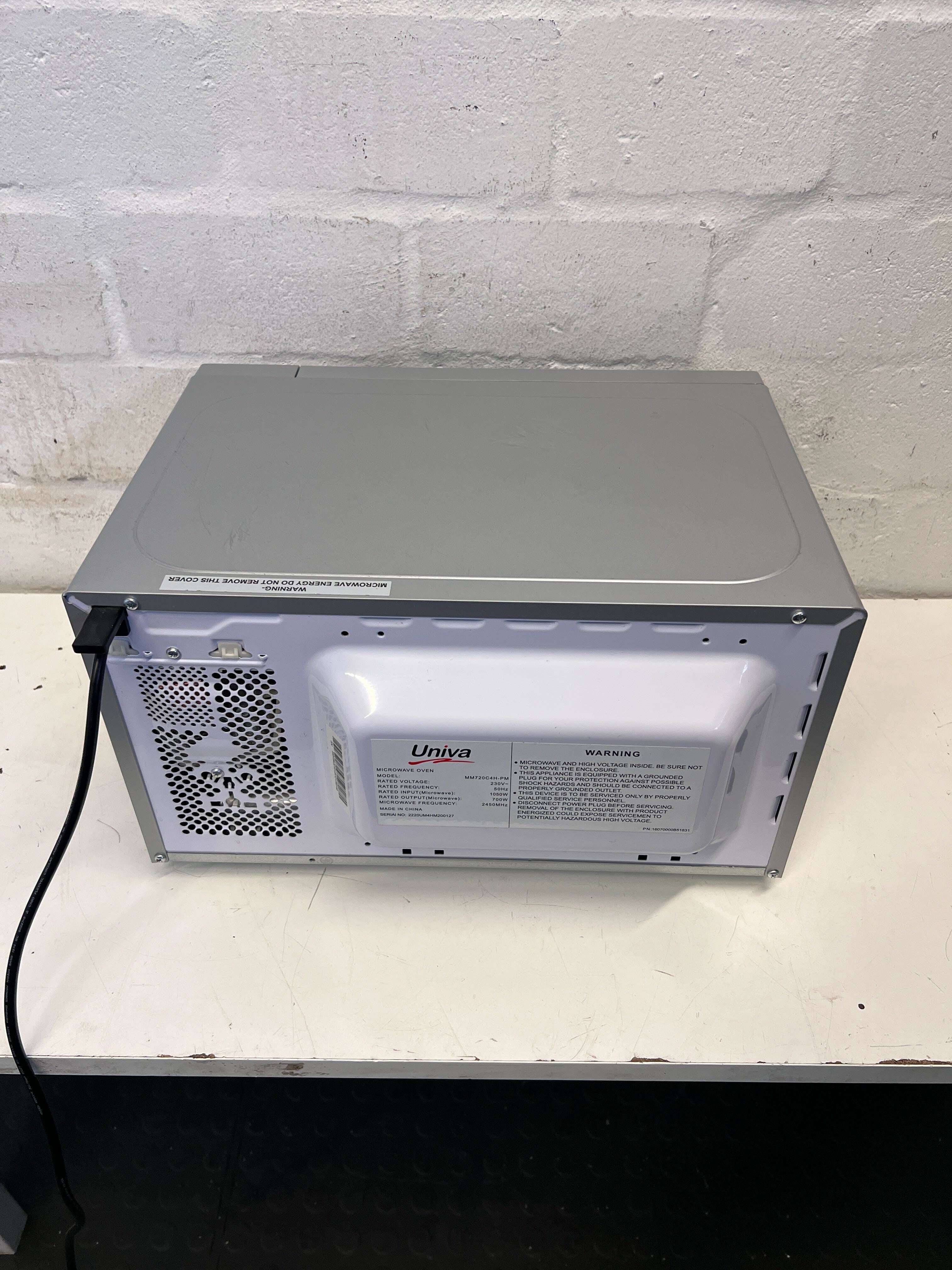 Compact Silver Univa Microwave - Excellent Condition with Minor Scratches - REDUCED