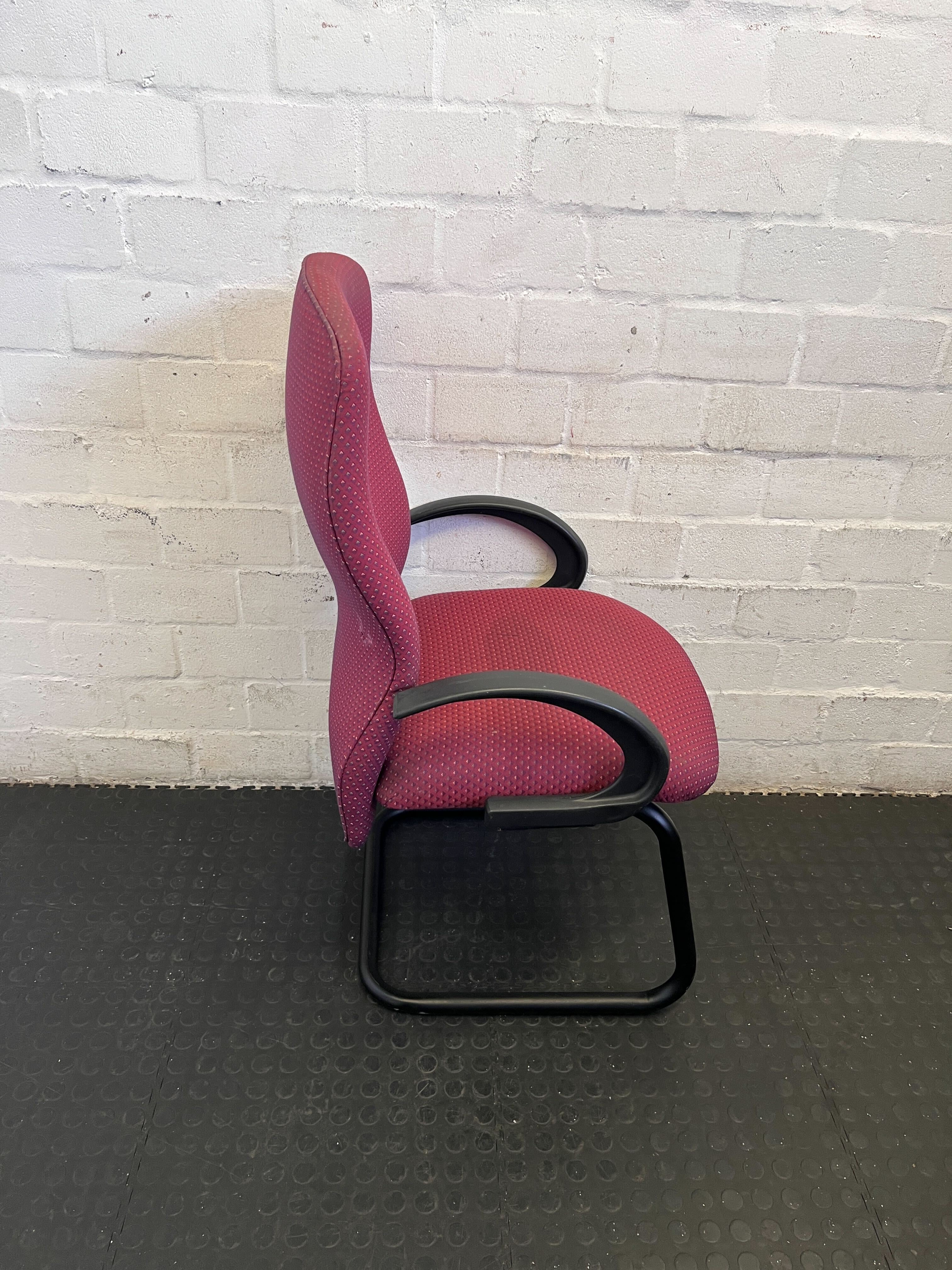 A56891 Add a touch of classic comfort to your office or waiting area with this burgundy guest chair. Featuring a robust black metal frame and fixed armrests, this chair provides a reliable and supportive seating option for visitors or meeting attendees. Its versatile design makes it suitable for various professional environments, offering both practicality and a pop of color. ✨🛋️🏢#OfficeChair #GuestSeating #MeetingRoomChair #SecondHandOffice #2ndhandwarehouse🧡