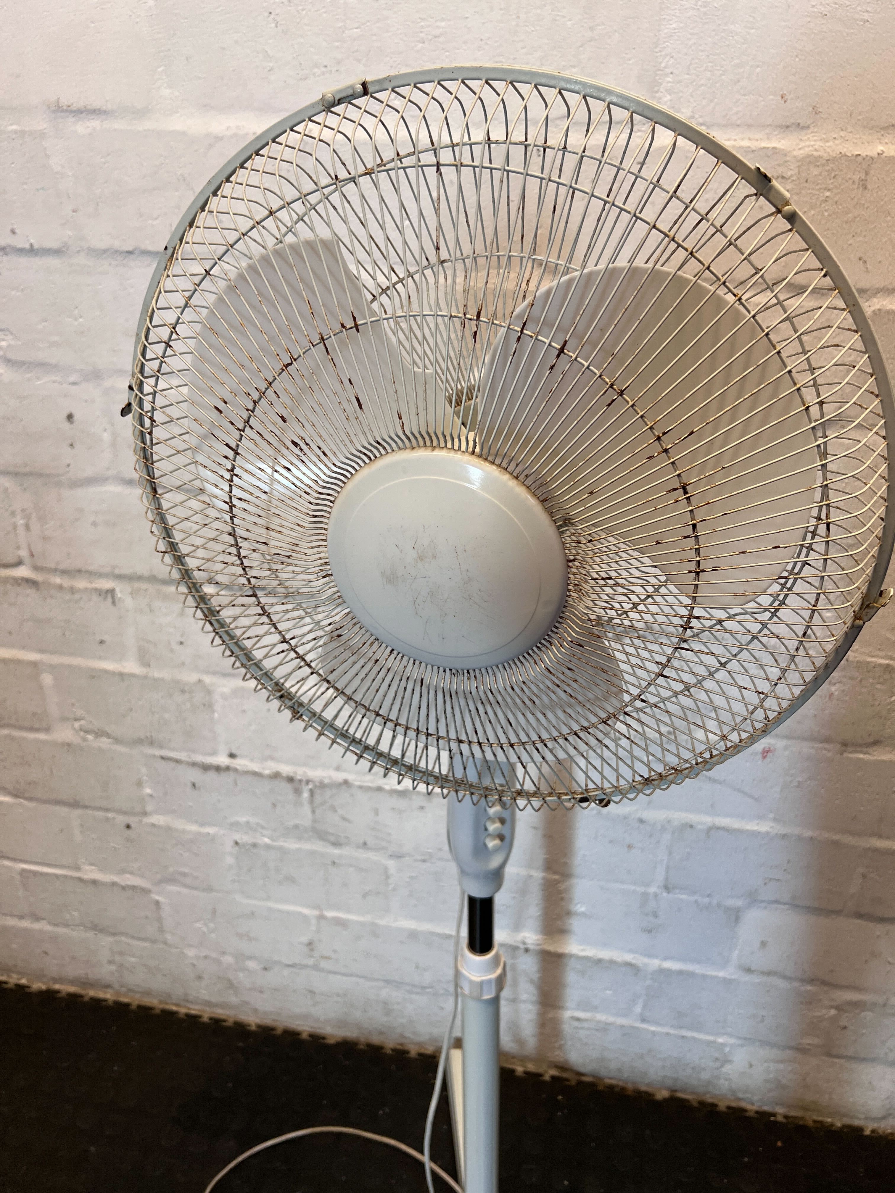 Beat the heat with this practical and reliable pedestal fan! ✨ Perfect for keeping any room cool and comfortable, this fan features adjustable height and an oscillating head to ensure widespread air distribution. Whether for your bedroom, living room, or office, it's a fantastic solution to combat warm days and nights. Its classic grey design blends seamlessly with most decor. 💨This fan is in good, pre-loved condition. As seen in the images, there is some visible dust and grime on the blades and grille, which would benefit from a good clean to restore its appearance. The white plastic body and base show minor scuffs and marks consistent with normal use. The power cord is intact. Fully functional and ready to bring a breeze into your space!